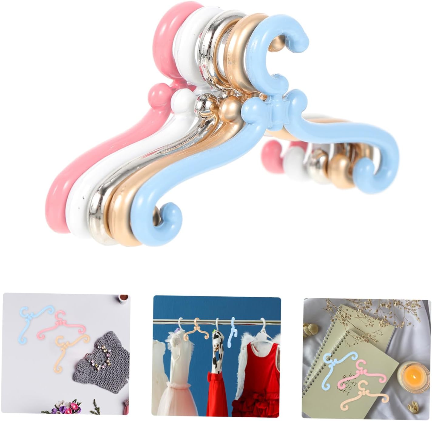 Mini gruccia per vestiti: quantità sufficiente con colori diversi per soddisfare le tue esigenze di quantità, grucce per vestiti Grucce in miniatura: materiale in lega di che può essere utilizzato per un lungo periodo, grucce in miniatura Appendiabiti in miniatura: regala questi appendini per bambole per la festa dei , il compleanno, le vacanze e altre occasioni speciali, appendini in miniatura Appendiabiti in miniatura: ha un design semplice, ma è molto pratico nell'uso, ottimo accessorio per bambole giocattolo, appendiabiti in miniatura Mini grucce: queste grucce sono accessori necessari per la tua mini casa e la rendono ordinata, gruccia in miniatura