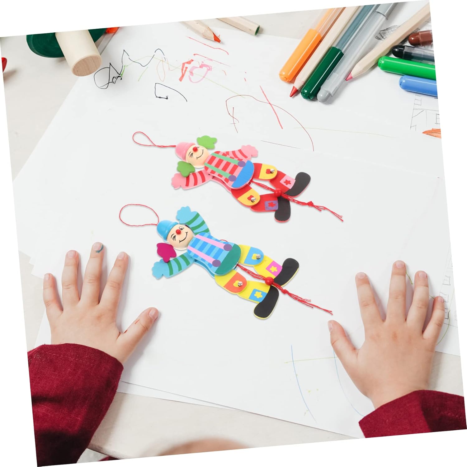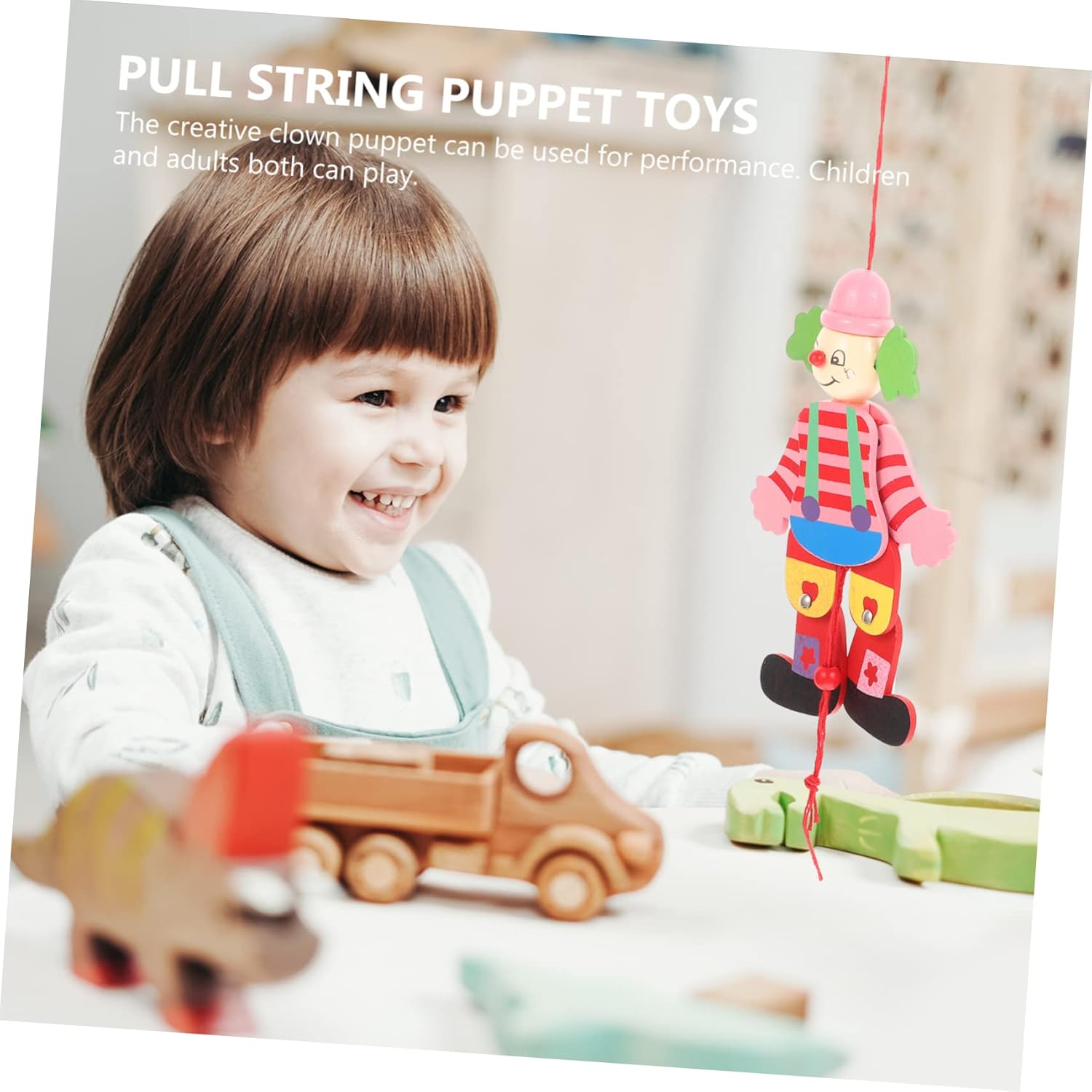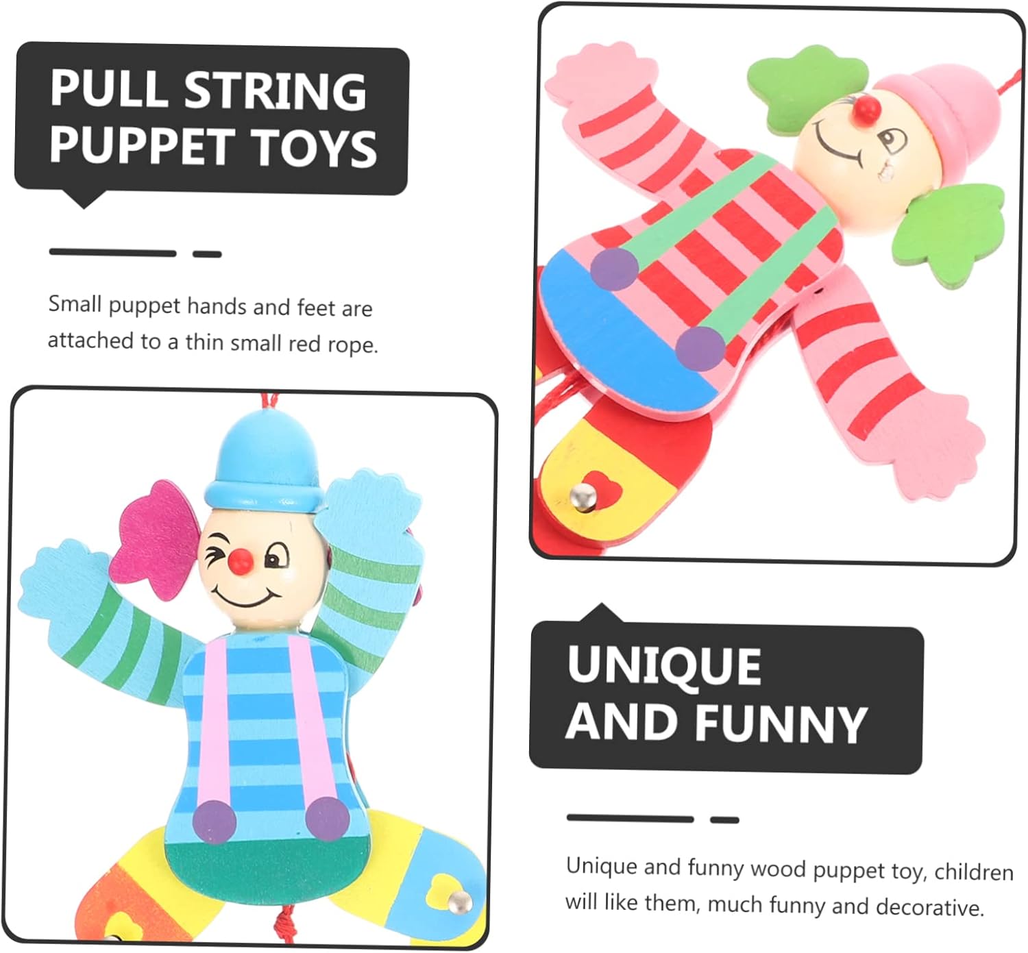 Giocattolo burattino interattivo: realizzato in materiale di legno naturale e di qualità superiore, sicuro e molto, burattino di pagliaccio di legno Marionetta: divertenti aggiunte a qualsiasi teatro di marionette, adorabili e pratiche, giocattoli da circo per bambini Giocattolo per spettacoli di marionette: marionetta da clown, divertente giocattolo interattivo per genitori e figli, che può esercitare la flessibilità delle dita del bambino, accessorio per spettacoli di marionette. Giocattoli marionette: la marionetta clown può portare più divertimento ai bambini a casa quando non possono giocare fuori, pagliaccio burattino Burattini da clown: il burattino da clown può aiutare la relazione genitore-figlio e può esercitare la flessibilità delle dita del bambino, burattino da clown