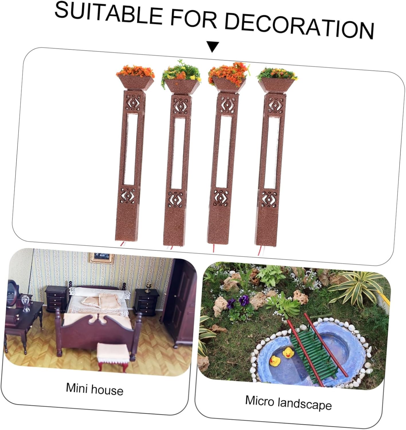 Piccolo lampione: invialo ai tuoi amici, lo adoreranno e potranno usarlo per decorare il loro tavolo di sabbia, luce di scena in miniatura Mini lampioni: l'ornamento del di lampione è realizzato in materiale abs sicuro e affidabile, pratico da usare, modelli di lampioni in miniatura Mini lampada decorativa: questo di mini lampione può essere l'ornamento decorativo per il di interni della tua mini casa, modelli di lampioni Lampada da parco in miniatura: il del lampione è realizzato in materiale abs, molto delicato e resistente per la decorazione, lampada in miniatura Decorative : gamma di utilizzo , una buona decorazione, in particolare una decorazione paesaggistica per mini case, buona decorazione per tavolo di sabbia o casa delle bambole, mini lampione
