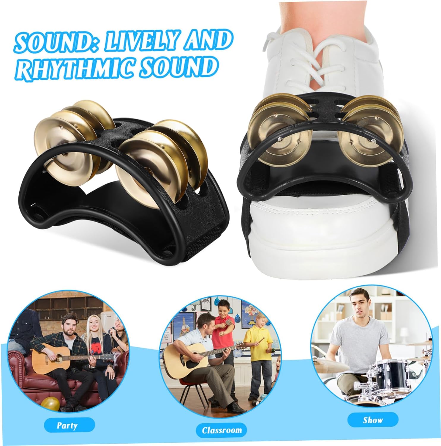 Utilizzo confortevole: progettato ergonomicamente per una sensazione confortevole del piede, riducendo il disagio durante l'uso prolungato, rendendolo ideale per lunghe esibizioni, shaker a percussione, tamburello per piedi per adulti Design a doppia : dotato di una doppia di sonagli, questo tamburello a pedale aggiunge più divertimento alla tua performance e offre una gamma più ampia di combinazioni di note, strumento a tamburello, bomboniera per feste con tamburelli Ampia gamma di usi: ideale per esibizioni musicali, insegnamento e vari altri contesti, questo tamburello a piede è uno strumento versatile per musicisti di tutti i livelli, tamburelli per piede, accessori per percussioni Maggiore suonabilità: la doppia di sonagli offre una maggiore suonabilità, consentendo ritmi più complessi e un'espressione musicale più ricca, tamburelli per adulti, strumento shaker Applicazioni versatili: adatto a varie esibizioni musicali, insegnamento e altre occasioni, questo tamburello a pedale è un'aggiunta versatile per qualsiasi musicista, tamburello, percussioni a pedale