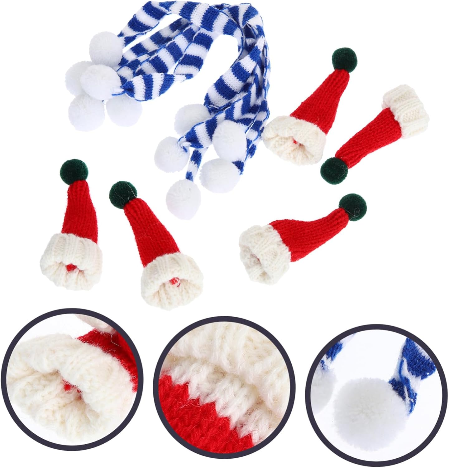 Mini cappelli lavorati a maglia per lavori artigianali: le dimensioni ridotte li rendono squisiti e delicati, adatti per decorazioni natalizie, mini cappelli e sciarpe per lavori artigianali Accessori per le feste: fantastici e meravigliosi oggetti di scena per riunioni di famiglia natalizie, feste, scatti fotografici. puoi portare un po' di natalizia ovunque tu vada con questo divertente accessorio in miniatura per festival Mini sciarpe per bottiglie: i mini cappellini natalizi in maglia e le mini sciarpe sono realizzati in lavorata a maglia di alta qualità, morbida e confortevole, che ti regala un'esperienza piacevole, piccoli cappelli natalizi assortiti Cappelli lavorati a maglia per lavori artigianali: puoi usarli per realizzare fatti a mano, realizzare babbo natale o di neve fai da te, copribottiglie di vino e così via, mini cappelli Mini sciarpa: questi mini cappelli per bambole lavorati a maglia sono molto adatti per progetti fai da te, come la lavorazione di gioielli, alberi di natale, bottiglie regalo, etichette regalo, bambole, vestiti, ecc., mini cappello per l'artigianato
