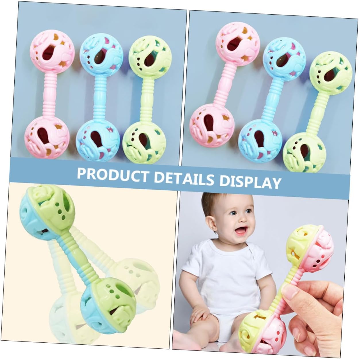 Giocattoli con manubri per bambini: la forma adorabile e il bellissimo design colorato li rendono più attraenti per i bambini, sonaglio con manubri per bambini Sonagli per neonati con manubrio: questo non contiene sostanze nocive e protegge la pelle delicata e la salute del bambino, giocattoli per neonati Sonaglio con manubrio per neonati: questo sonaglio è realizzato in materiale plastico sicuro, robusto e durevole, ha una buona capacità anticaduta e può durare per molti anni. manubrio per neonati Giocattoli per bambini: hanno un piccolo campanello incorporato, finché il bambino dondola con la mano, può emettere un piacevole suono di campanello, che può allenare il talento musicale del bambino, campanelli per bambini Sonagli per bambini con manubri: possono essere una buona scelta anche per gli amici con bambini, piaceranno loro, sonaglio per bambini