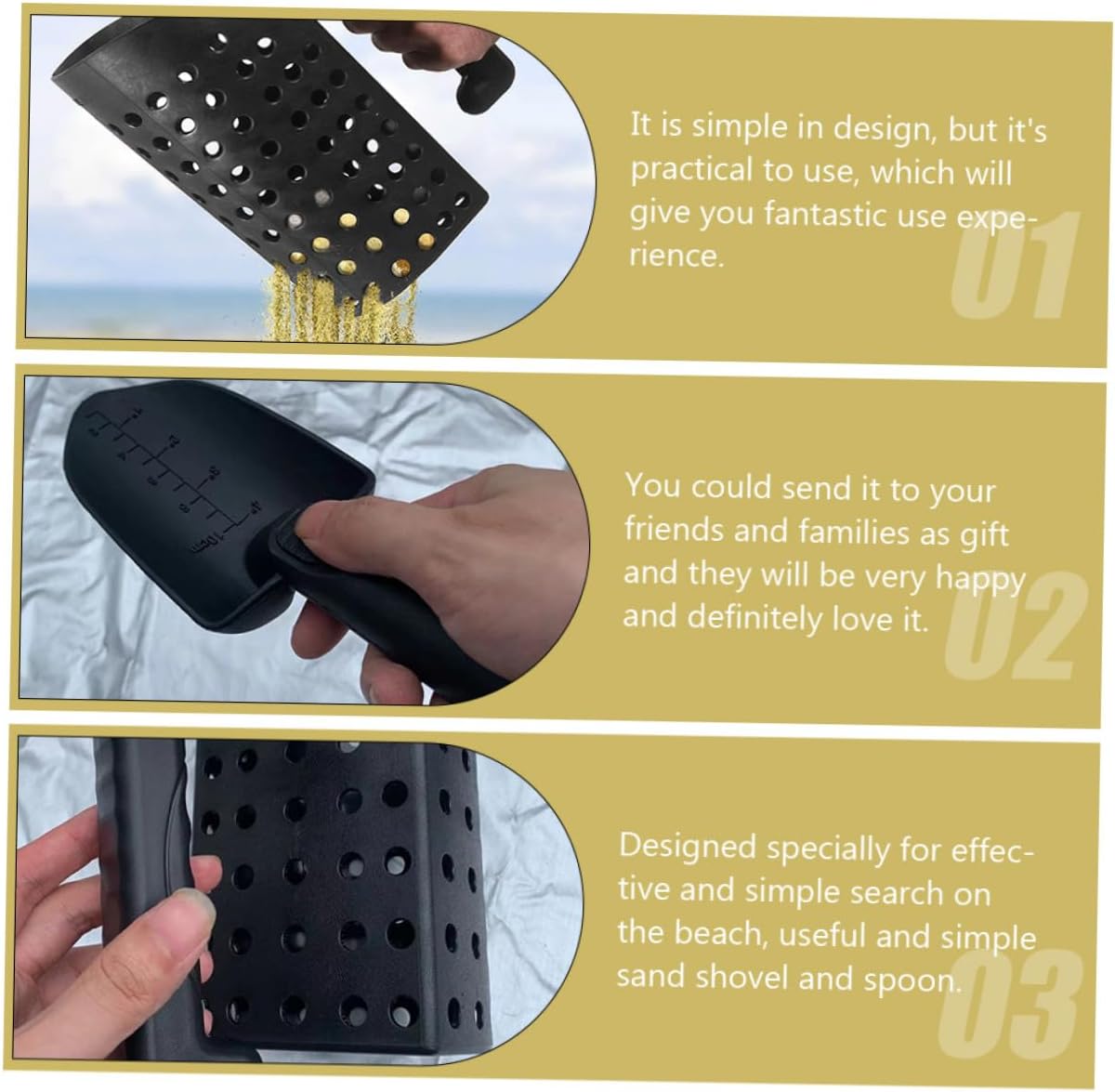 Strumenti per la ricerca di tesori: realizzati con materiali di eccellente durata e praticità, per la sabbia per la ricerca di tesori Per sabbia per la rilevazione di metalli: leggera e portatile, con impugnatura ergonomica, non facile da deformare e rompere, per sabbia per la rilevazione di metalli Per sabbia con rilevamento di metalli: questo set di palette per sabbia rende la setacciatura della sabbia rapida e facile, con una comoda da usare, per sabbia per il rilevamento di metalli Strumenti di scavo: questo set di pale è molto facile e semplice da usare, offrendoti un'enorme praticità, per la sabbia per il rilevamento dei metalli Per sabbia per la rilevazione di metalli: realizzata in materiale di alta qualità, robusta e durevole, eccellente e utile per l'uso, strumenti per la ricerca di tesori