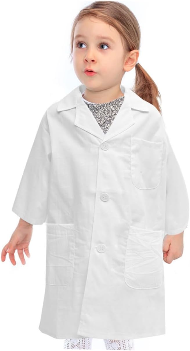 Facile manutenzione: questo camice da laboratorio è lavabile in lavatrice ed è affidabile. È facile da pulire e mantenere per i genitori, garantendo che rimanga in ottime condizioni. Camice da medico per bambini piccoli, costume da camice da laboratorio Diversità di età: disponibile in diverse taglie per età diverse, garantendo una vestibilità comoda e adeguata a tutti, camice da laboratorio, camice da laboratorio per Facile da lavare: questo camice da laboratorio è lavabile in lavatrice e di facile manutenzione. È conveniente per i genitori mantenersi puliti ed è adatto a diverse fasce d'età: è adatto a diverse fasce d'età e garantisce un'ottima vestibilità per qualsiasi giovane medico o scienziato. Facile da pulire: questo camice da laboratorio è lavabile in lavatrice ed è affidabile. È facile per i genitori pulire e mantenere, risparmiando tempo e fatica. Costume da medico sceriffo di Halloween MULTIUSO: ottimo per recite scolastiche, giochi di ruolo all'asilo, feste in maschera e altro ancora, rendendolo un'aggiunta versatile al guardaroba di ogni bambino, camice bianco da laboratorio, camice da chef per bambini