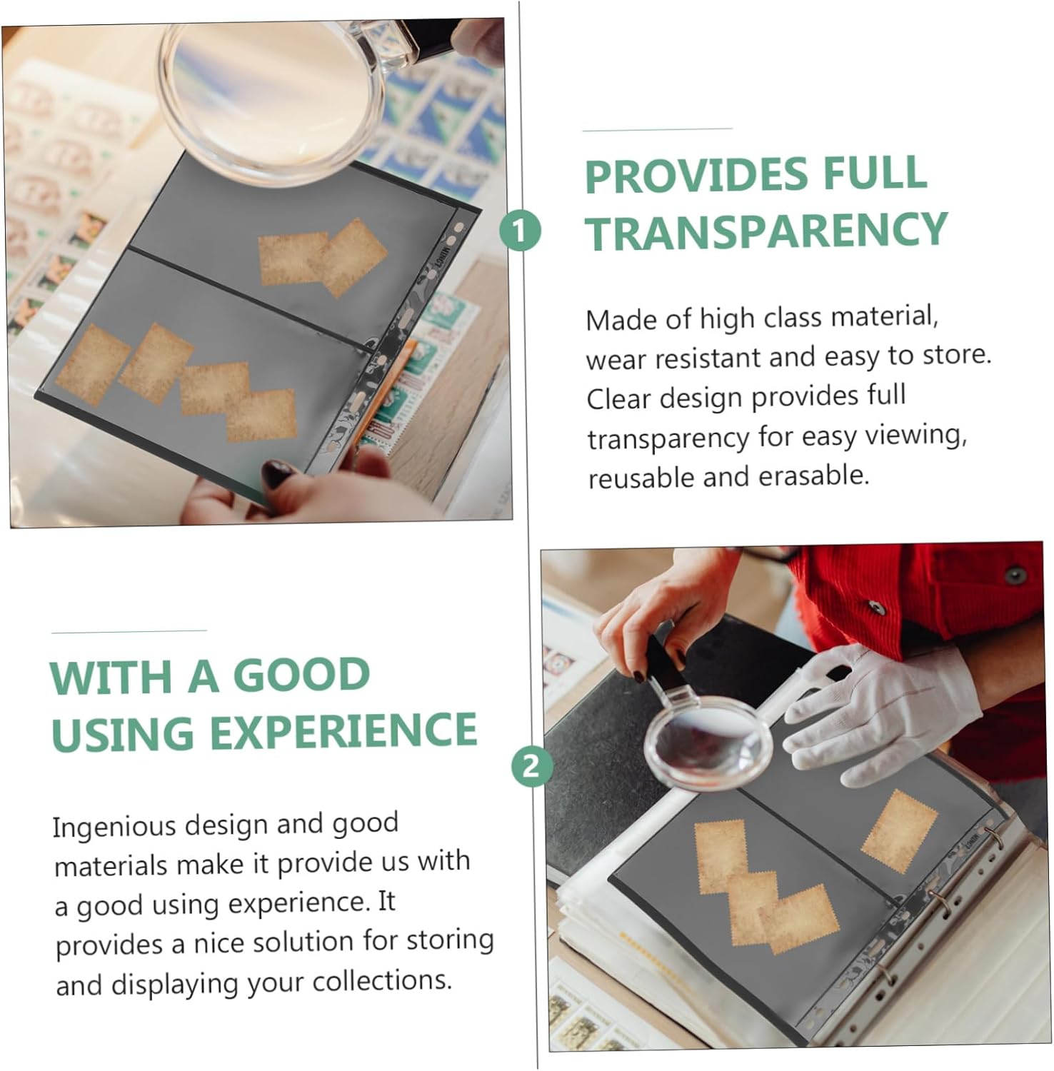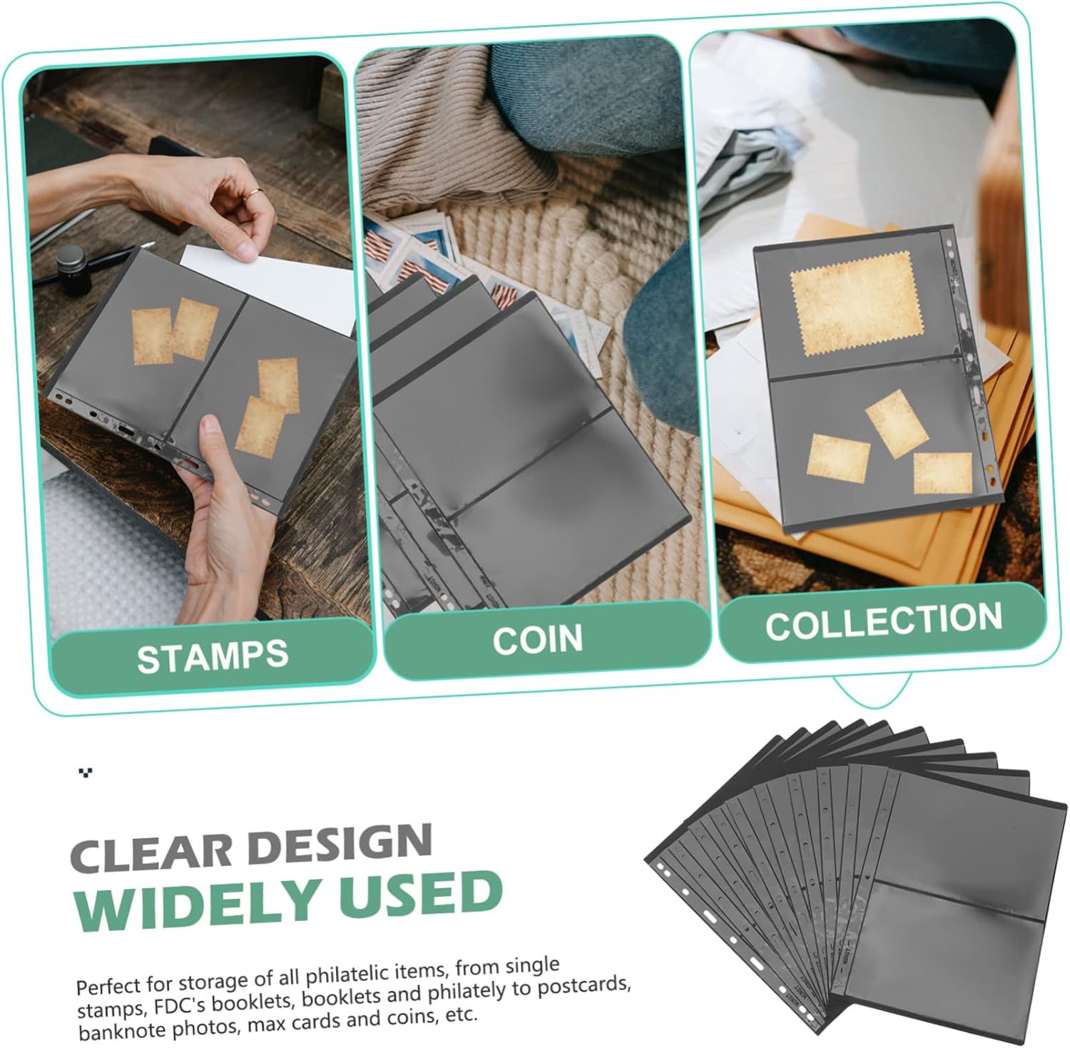 Accessori per collezionisti di francobolli: può essere utilizzato per i tuoi amici che collezionano francobolli e saranno molto felici, Timbro da biblioteca: si adatta alla maggior parte delle carte, come carte da gioco, mini foto, banconote, francobolli, ecc., Porta francobolli per collezionisti Collezionista di carte per francobolli: facile da usare, mantiene le monete in ordine, il peso leggero ti consente di trasportarlo facilmente ovunque, Album per porta pagine: la lavorazione è perfetta e avrai una buona esperienza Usa i francobolli per la spedizione Porta francobolli: il design trasparente è comodo per riporre gli adesivi e funge efficacemente da collezione e artigianato dei francobolli
