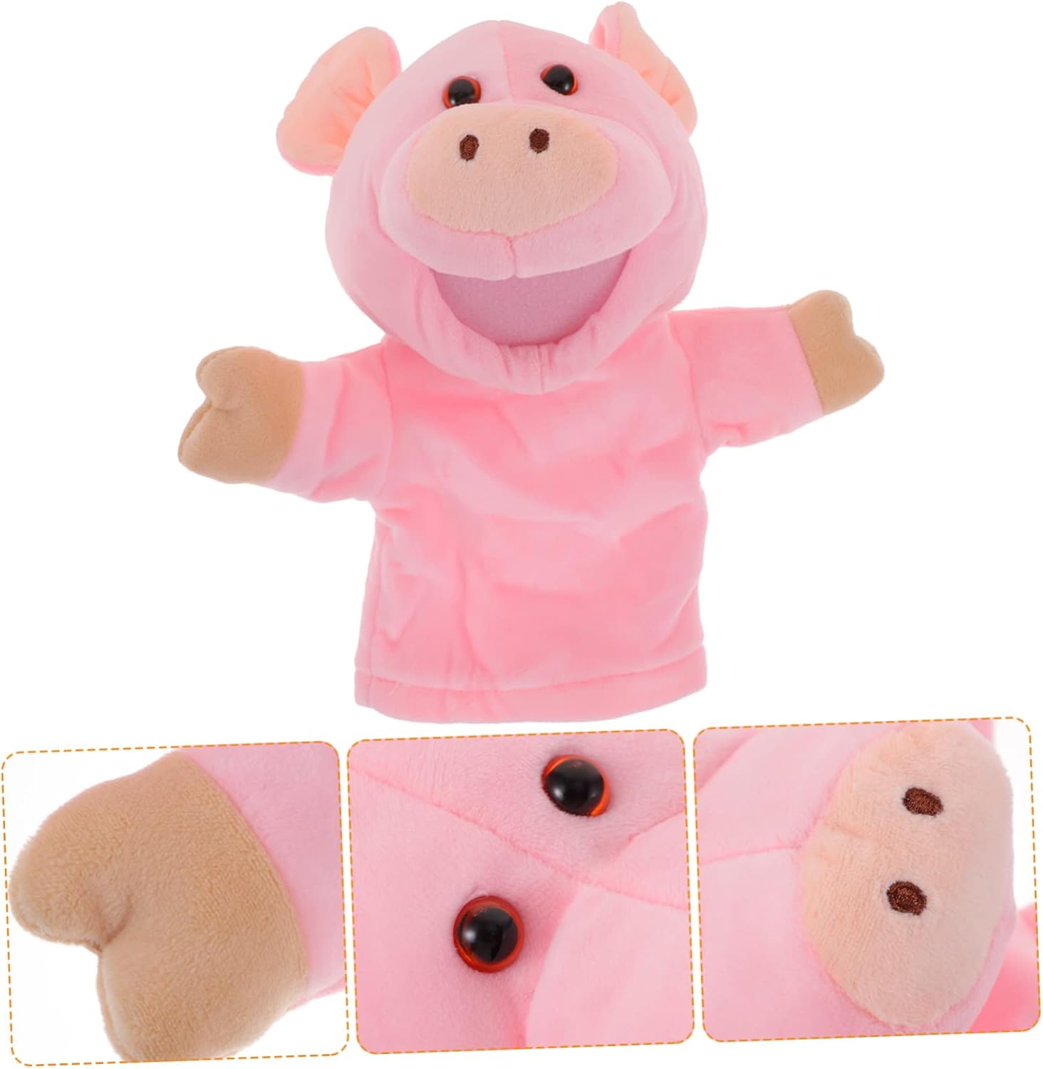 Burattino a mano: con questo burattino a mano puoi raccontare storie ai tuoi bambini, la favola della buonanotte sarà più interessante, giocattolo per bambini Burattino di peluche a forma di maiale: scegliere un burattino a mano aiuta a promuovere la creatività e la comprensione del tuo bambino, giocattolo di peluche Burattino da dito per animali morbidi: leggero e portatile, adatto per uso interno e sempre e ovunque. Il burattino a mano è liscio e appagante, bambole di maiale giocattoli per bambini: eccellenti per le capacità motorie, la coordinazione occhio-mano, le capacità di comunicazione e la costruzione della fiducia in se stessi, bambole Maiale burattino ripieno: il burattino a mano è realizzato in materiale di peluche pratico e di alta qualità, comodo da tenere, buona consistenza, peluche