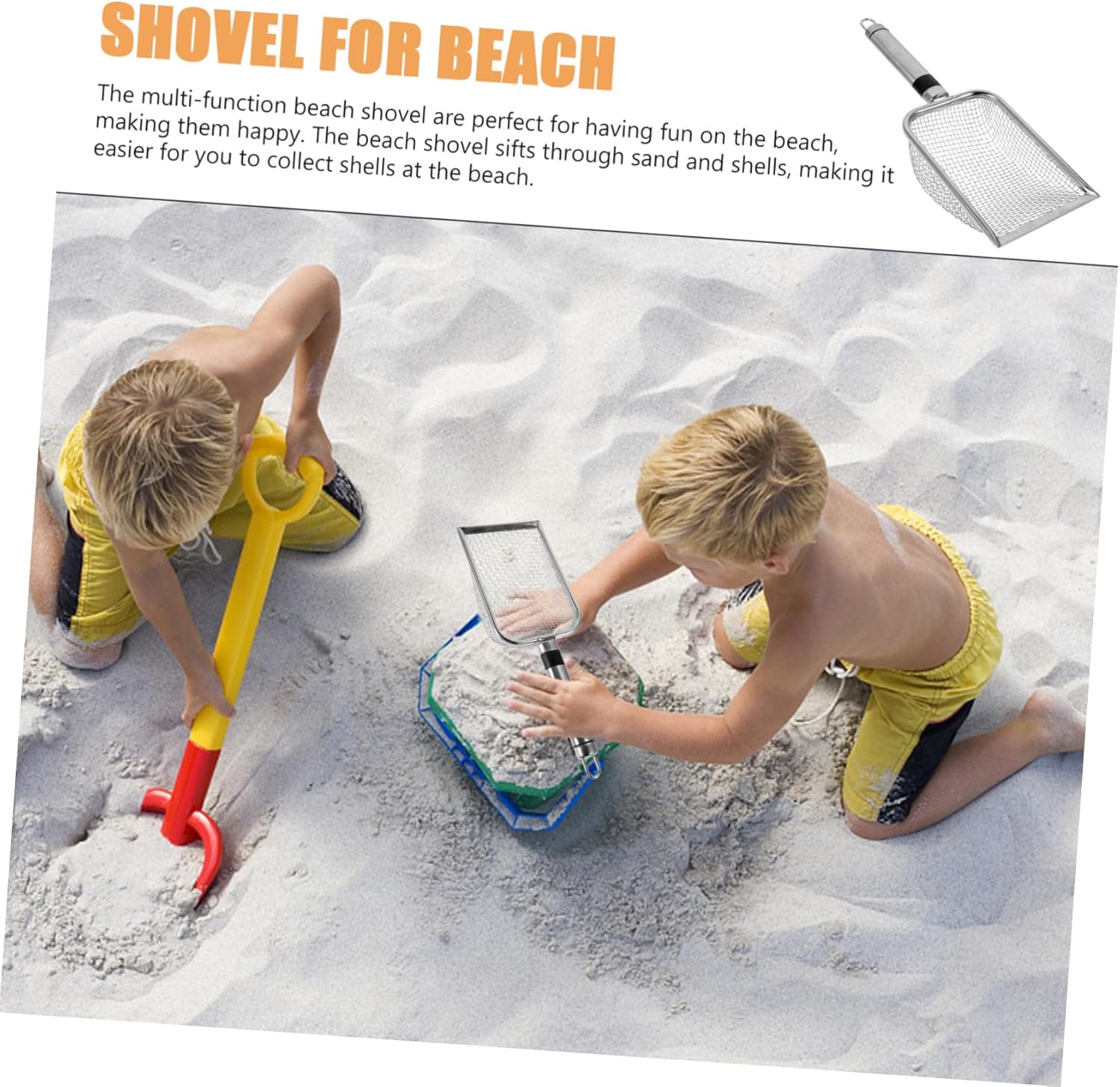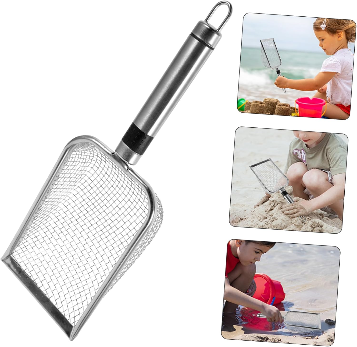 Accessori da spiaggia per rimuovere la sabbia - la pala da spiaggia in rete ha un manico della giusta lunghezza, comoda e pratica da impugnare, pala per secchiello per la sabbia gioca con la sabbia filtrata - la pala per raccolta ti porta anche in spiaggia e può filtrare la sabbia senza perderla, pala da spiaggia in rete per sabbia pala da spiaggia per conchiglie - l'adorabile pala per la sabbia è creativa e pratica e ti fa divertire, pala per sabbia da spiaggia inossidabile Sand Sieve Beach - Puoi regalare una pala da spiaggia ai tuoi amici a cui piace raccogliere conchiglie e saranno molto felici per usarla con una pala e una pala da sabbia - la pala è molto resistente nella sabbia bagnata, oppure puoi usarla per raccogliere altre conchiglie, pala da sabbia in rete
