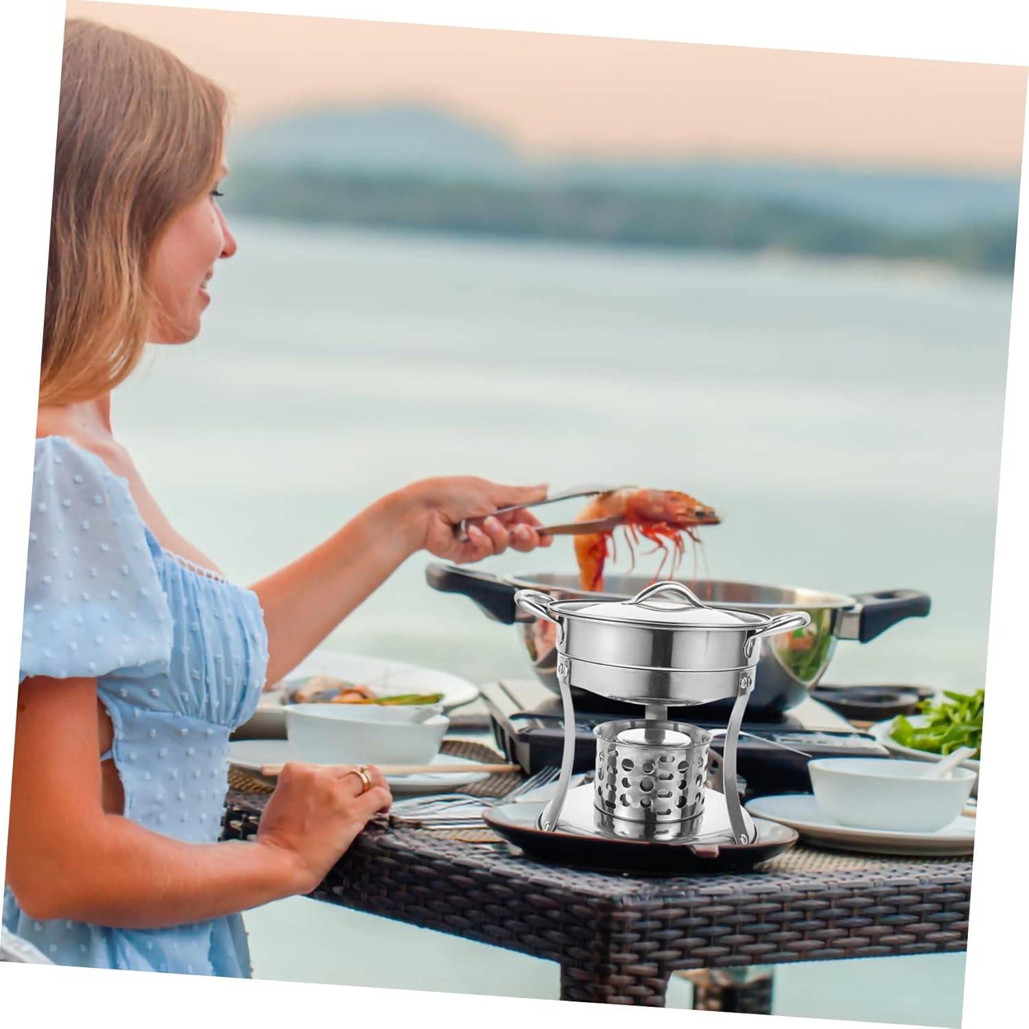 Pentola calda con fornello: realizzata in acciaio inossidabile, pratica e abbastanza resistente da poter essere utilizzata in casa Utensili da cucina: puoi usare questa fornello per fonduta per le feste a casa, per ogni di parenti o per le riunioni di famiglia, naturalmente, puoi anche usarla all'aperto, pentola da cucina Pentola calda da cucina: la pentola calda è dotata di un fornello e questa pentola calda è molto comoda da usare, pentola calda divisa Pentola multiuso: l'interno è liscio, facile da pulire e può essere riutilizzato, può essere utilizzato senza preoccupazioni, pentola calda a doppio manico Pentola in acciaio inossidabile: facile da usare e da usare grazie alla sua superficie lucidata, la pentola calda è molto comoda da pulire, pentola calda