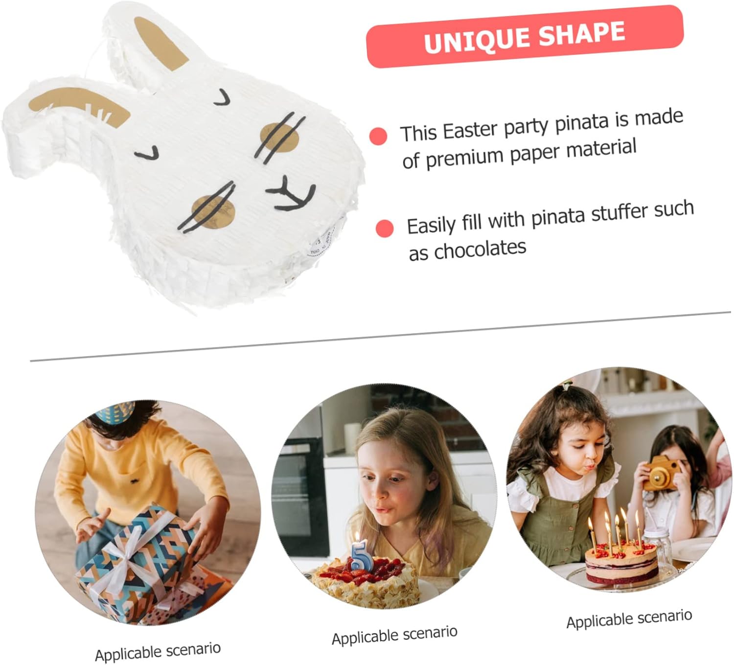Piñata di peluche: design unico e sofisticato che dona a questo coniglietto di carta un aspetto così carino con i suoi colori vivaci e l'aspetto vivace, perfetto per decorare una festa di Pasqua, Piñata giocattolo Pinata: il tradizionale giocattolo della pignatta è trasformato in una forma creativa e molto trendy, Piñata di carta piñata a forma di coniglio: puoi facilmente attaccarla a un albero, una porta, una finestra, un muro, un letto o appenderla ovunque tu voglia decorarla. piñata da festa Piñata da festa: presenta un design a forma di testa di coniglio, unico e creativo, che attirerà molto l'attenzione dei bambini, decorazioni per feste di compleanno di piñata con testa di coniglio per ragazzi: il design divertente e accattivante sarà popolare tra i bambini di tutte le età e ravviverà le loro feste. giocattolo piñata per feste