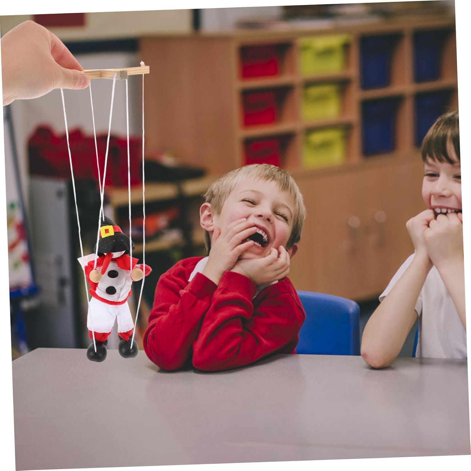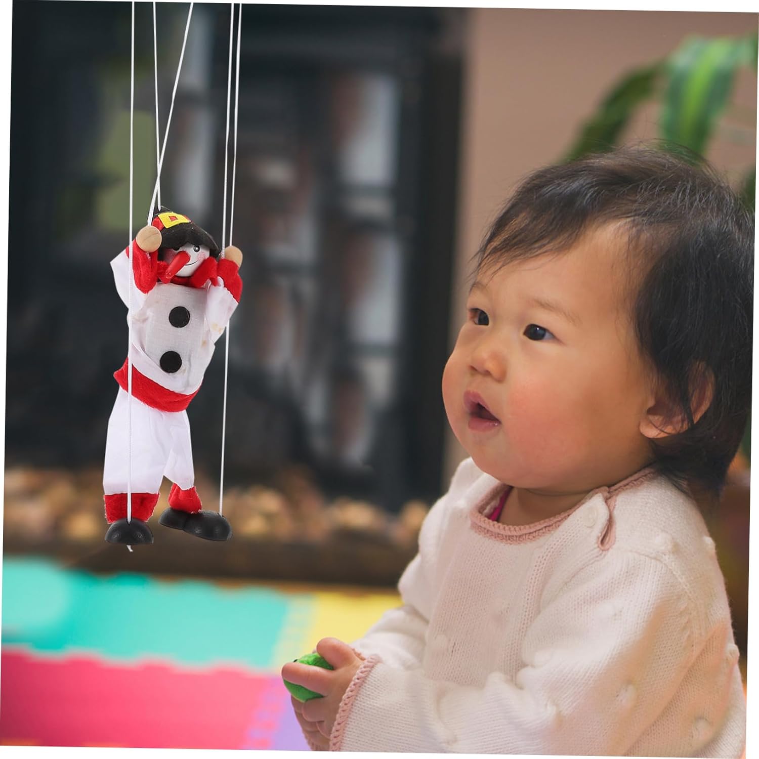 Tessuto morbido: realizzato in tessuto morbido e confortevole, garantisce una piacevole esperienza di gioco per i bambini, giocattoli creativi in tessuto, giocattoli per bambini in tessuto Facile da usare: il semplice cordino facilita l'utilizzo da parte dei bambini e migliora la loro coordinazione e destrezza. Marionette, giocattoli per giochi di ruolo Facile da usare: il meccanismo a corda è facile da usare e aiuta a sviluppare la coordinazione occhio-mano e le capacità motorie. Vintage per famiglia, tema natalizio interattivo: progettato con un tema natalizio festivo, aggiunge atmosfera vacanziera ed è una decorazione perfetta, artigianato con pupazzi di neve per grandi quantità, genitore-figlio interattivo Confortevole: realizzato in tessuto morbido, offre un'esperienza di gioco comoda e sicura per ballerini di marionette a vento, ornamenti di marionette