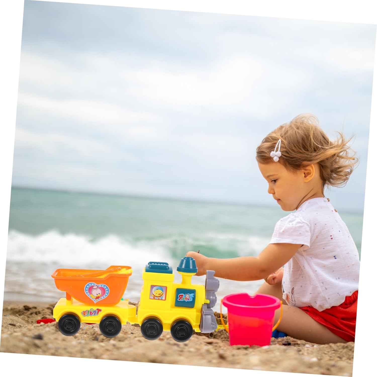 Sabbiera con camion - per tutte le età e offre ore di divertimento e giochi fantasiosi, Trenino da spiaggia Giocattolo da spiaggia Carro da spiaggia - questo set di giocattoli ha colori vivaci e forme bellissime ed è un interessante giocattolo con la sabbia Giocattoli con sabbia - facili da pulire dopo l'uso, basta pulirli con acqua, semplici e pratici, giocattoli con sabbiera Utensili da spiaggia per - realizzati in plastica di alta qualità con pregevole fattura, sono sicuri, robusti e, sabbiere per giocattoli con sabbiera per ragazze, autocarro con cassone ribaltabile - Arricchisci l'immaginazione e la creatività dei bambini utilizzando gli strumenti del secchio del treno e il giocattolo con la sabbia