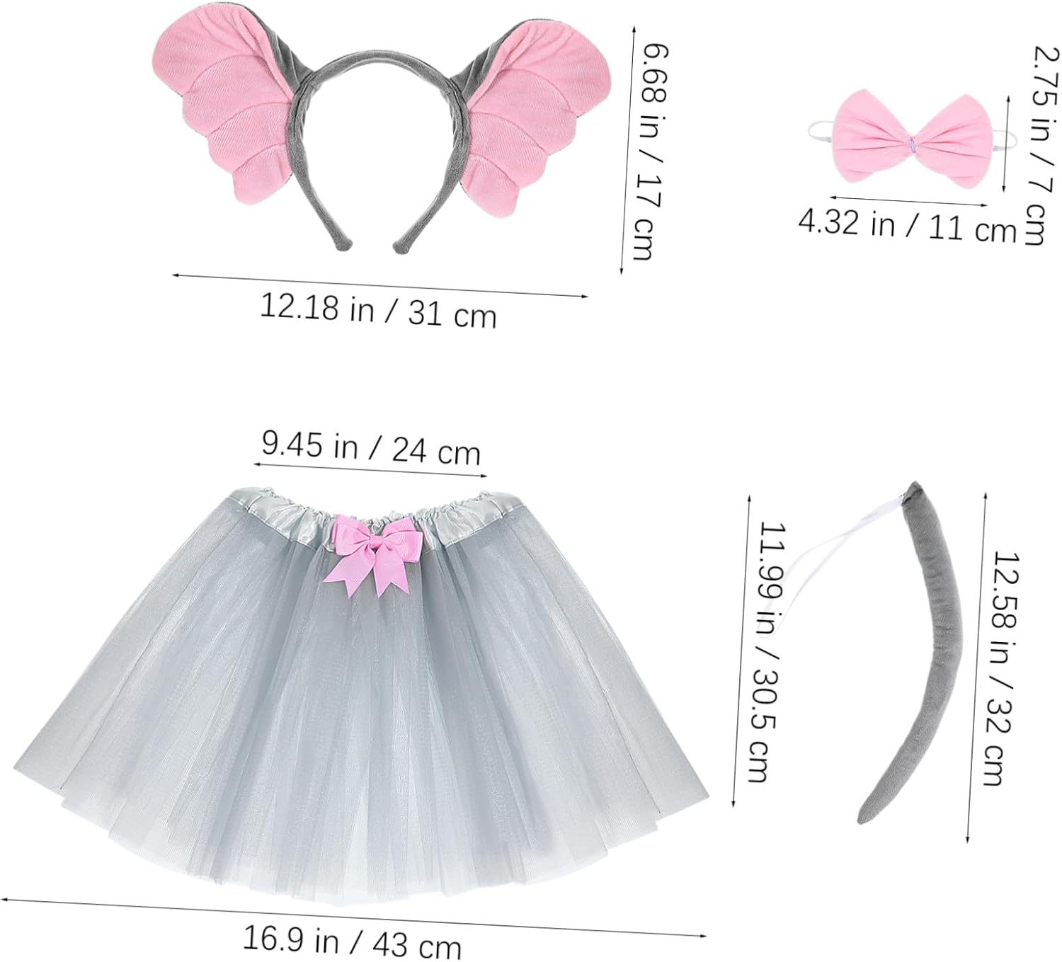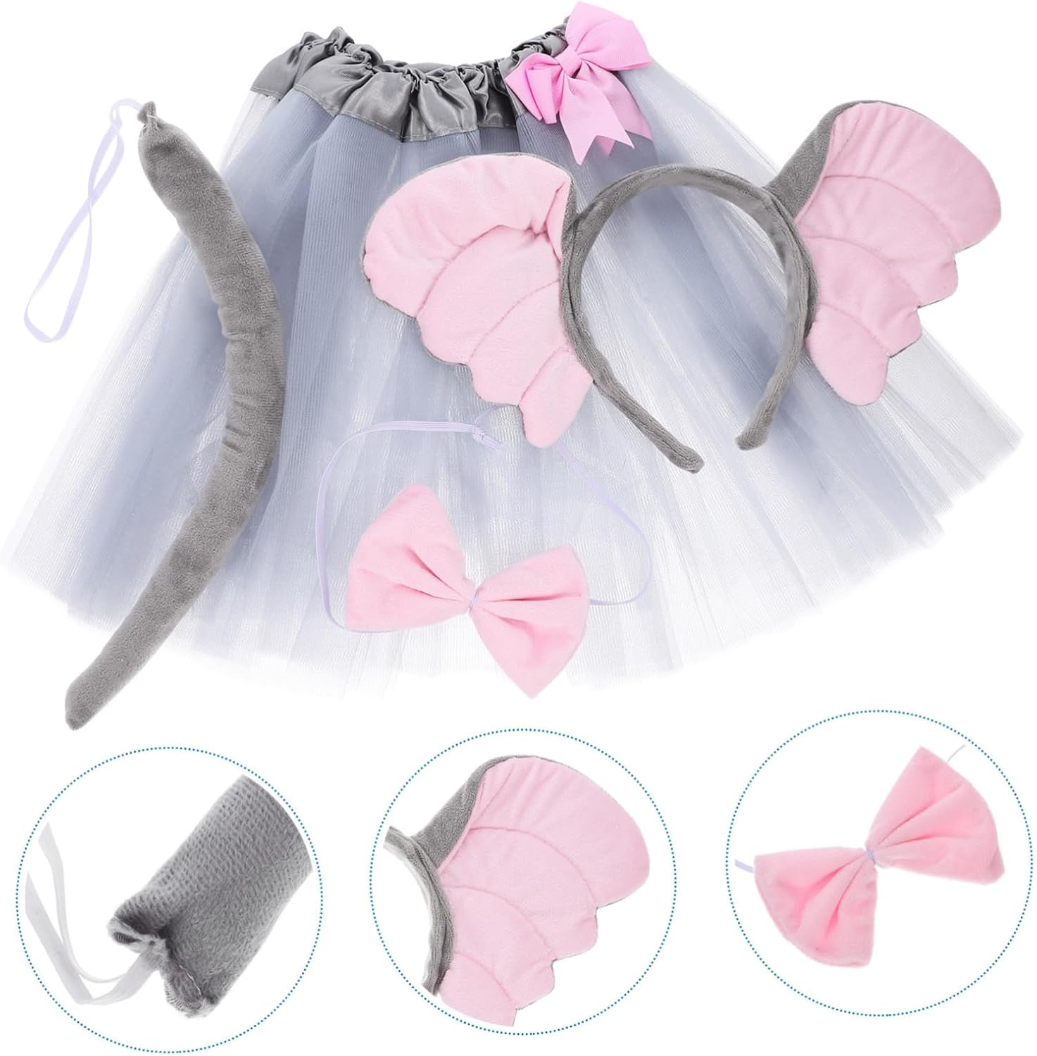 Costume da animale per - orecchie, capelli, creativo e adorabile, per distinguerti alla festa, costumi da animale per ragazze Costume da elefante per ragazze - perfetto per feste di Pasqua, feste in costume, feste in maschera, giochi di ruolo, giochi di ruolo., Costume da elefante per Halloween Costume da elefante per bambini piccoli - con bellissime decorazioni, adorabile fascia per capelli e forma di orecchie di animale, con papillon e gonna, che è attraente e decorativo, Costume da elefante per bambini Costumi per - Puoi facilmente creare un'atmosfera ad una festa di compleanno con adorabili accessori e un costume di Halloween Animale costume per - Questi accessori cosplay sono ottimi per scattare foto interessanti per vari festival, set di costumi da elefante