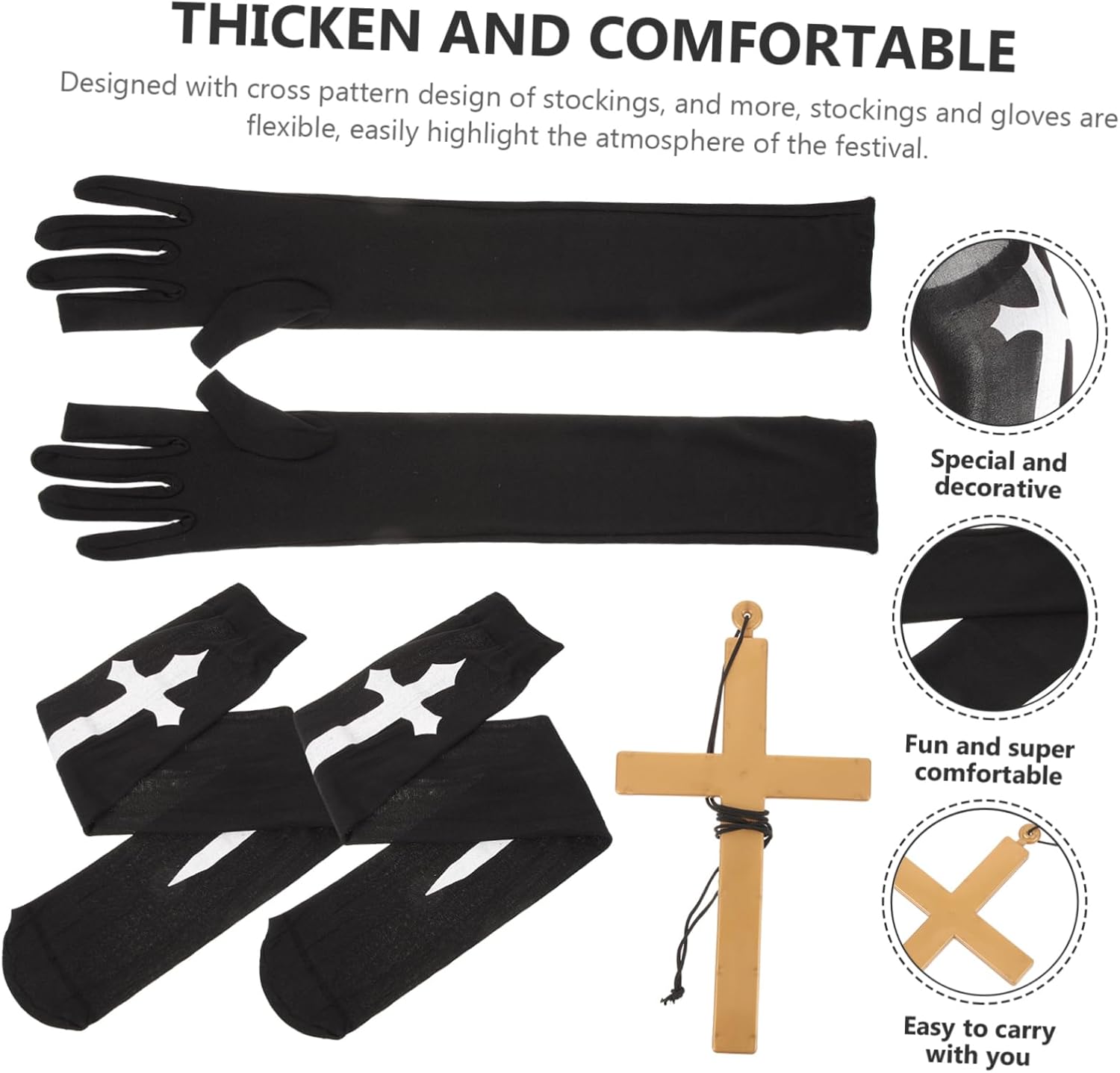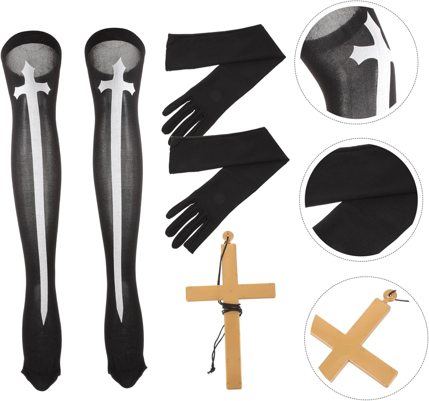 lista dei pacchetti 1 paio di guanti 1 paio di calze 1 collana caratteristiche - : come mostrato collana con pendente a croce in oro - dimensioni: 72,00x8,50x0,50 cm/28,30x3,34x0,20 pollici calzini alla coscia extra lunghi - materiale: vesti lunghe di stoffa - dimensioni: 65,50x13,20x0,80 cm/25,74x5,19x0,31 pollici costume - dimensioni: 54,00x9,00x0,50 cm/21,22x3,54x0,20 pollici festa : ottimi per feste e spettacoli di cosplay, possono aiutarti a i momenti salienti di una festa e ad attirare l'attenzione delle persone. - il design è e distintivo, conforme all'atmosfera della festa. costume da suora donna - speciale e decorativo, elegante e creativo, evidenzia facilmente l'atmosfera del festival delle calze gotiche. - calzini e guanti innovativi, divertenti e super comodi, ti faranno risaltare in mezzo alla lolita goth. - attirerà l'attenzione della gente a vista e può fornire una buona esperienza estetica per il tuo ragazzo. informazioni sulla merce addio nubilato questi accessori per costumi da suora sono fatti di buon materiale, addensati e comodi. Goth lolita decorativi e creativi, evidenziano facilmente l'atmosfera del festival. Calzini goth disegnati con un motivo a croce di calze e inoltre, calze e guanti sono flessibili