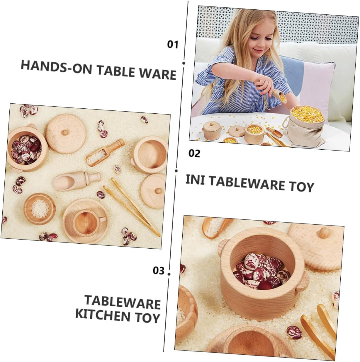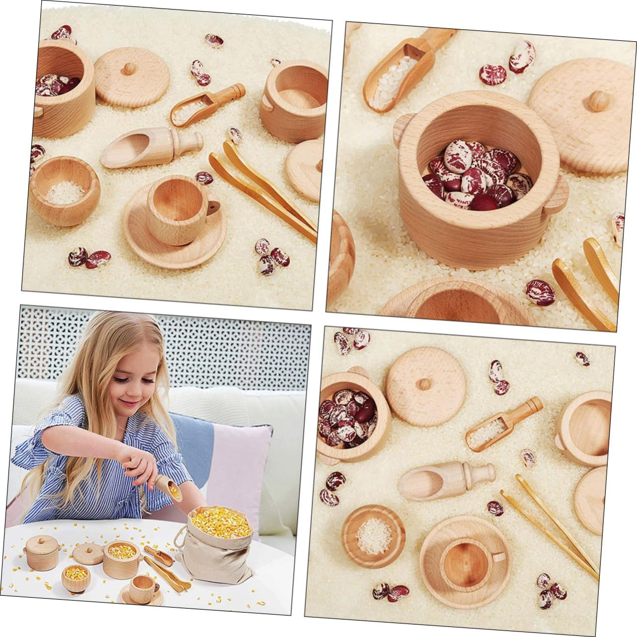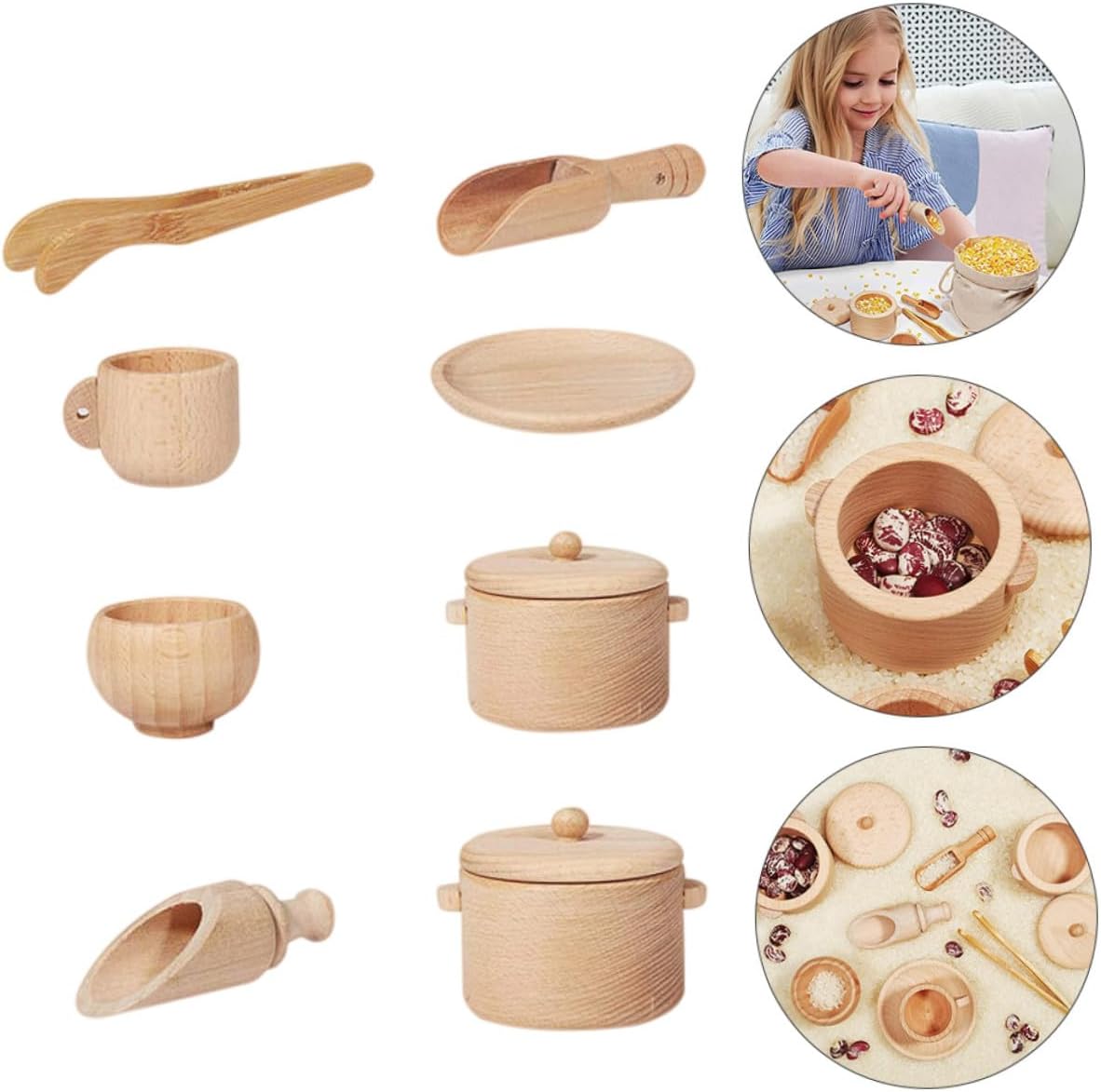 Giocattoli per stoviglie in legno: set di stoviglie giocattolo in legno unico e liscio, un piccolo design adatto per, crea sicurezza e porta divertimento, strumento per la casa da gioco Mini utensili da cucina: strumenti sensoriali abbastanza pratici per promuovere abilità di vita reale, trasferire lavoro, migliorare le capacità motorie e divertirsi, strumento per stoviglie Giocattoli per la casa: realizzati con materiali, sono molto sicuri e non possono essere costantemente supervisionati dai genitori, giocattoli per bambini Strumenti per la tavola sensoriali: una selezione di regali per bambini, come la festa dei bambini, i compleanni, le vacanze e il Natale, mini giocattoli per la tavola Giocattoli da tavola: il design in puro colore del legno è naturale, protegge la vista ed è molto adatto ai bambini, giocattoli da cucina di simulazione