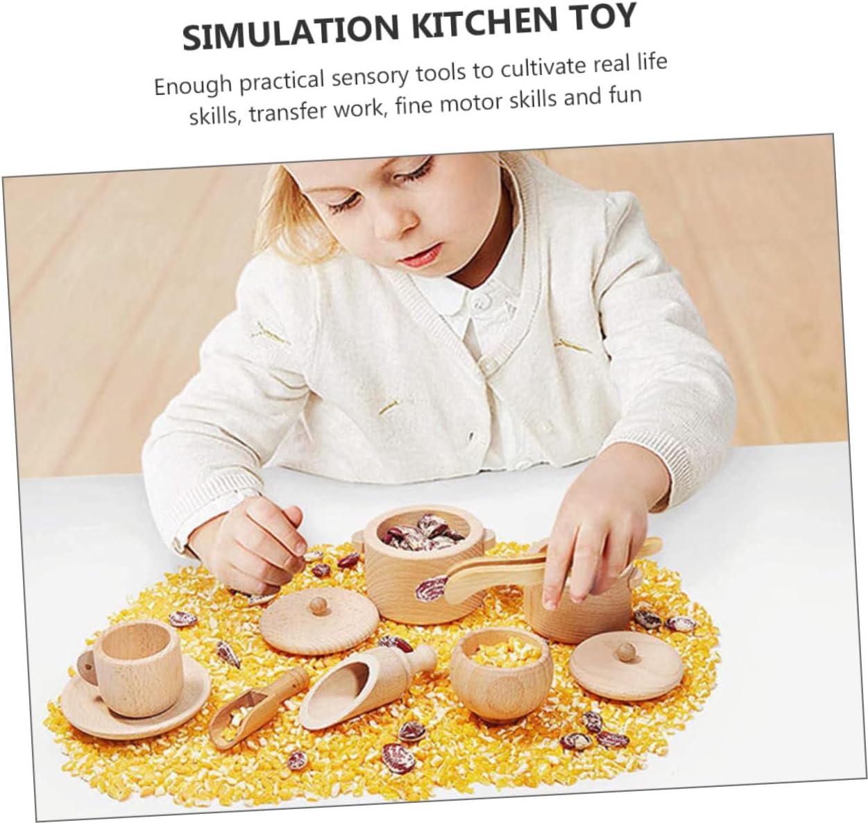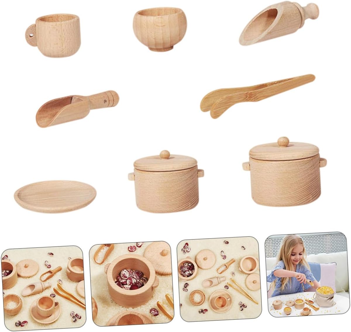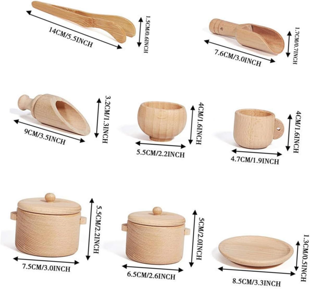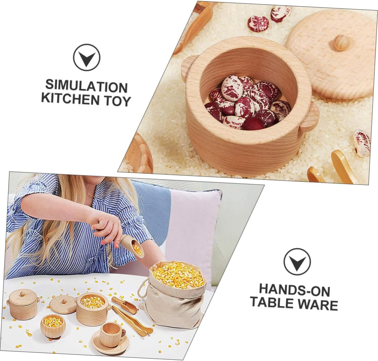 Giocattoli per stoviglie in legno: set di stoviglie giocattolo in legno unico e liscio, un piccolo design adatto per, crea sicurezza e porta divertimento, strumento per la casa da gioco Mini utensili da cucina: strumenti sensoriali abbastanza pratici per promuovere abilità di vita reale, trasferire lavoro, migliorare le capacità motorie e divertirsi, strumento per stoviglie Giocattoli per la casa: realizzati con materiali, sono molto sicuri e non possono essere costantemente supervisionati dai genitori, giocattoli per bambini Strumenti per la tavola sensoriali: una selezione di regali per bambini, come la festa dei bambini, i compleanni, le vacanze e il Natale, mini giocattoli per la tavola Giocattoli da tavola: il design in puro colore del legno è naturale, protegge la vista ed è molto adatto ai bambini, giocattoli da cucina di simulazione