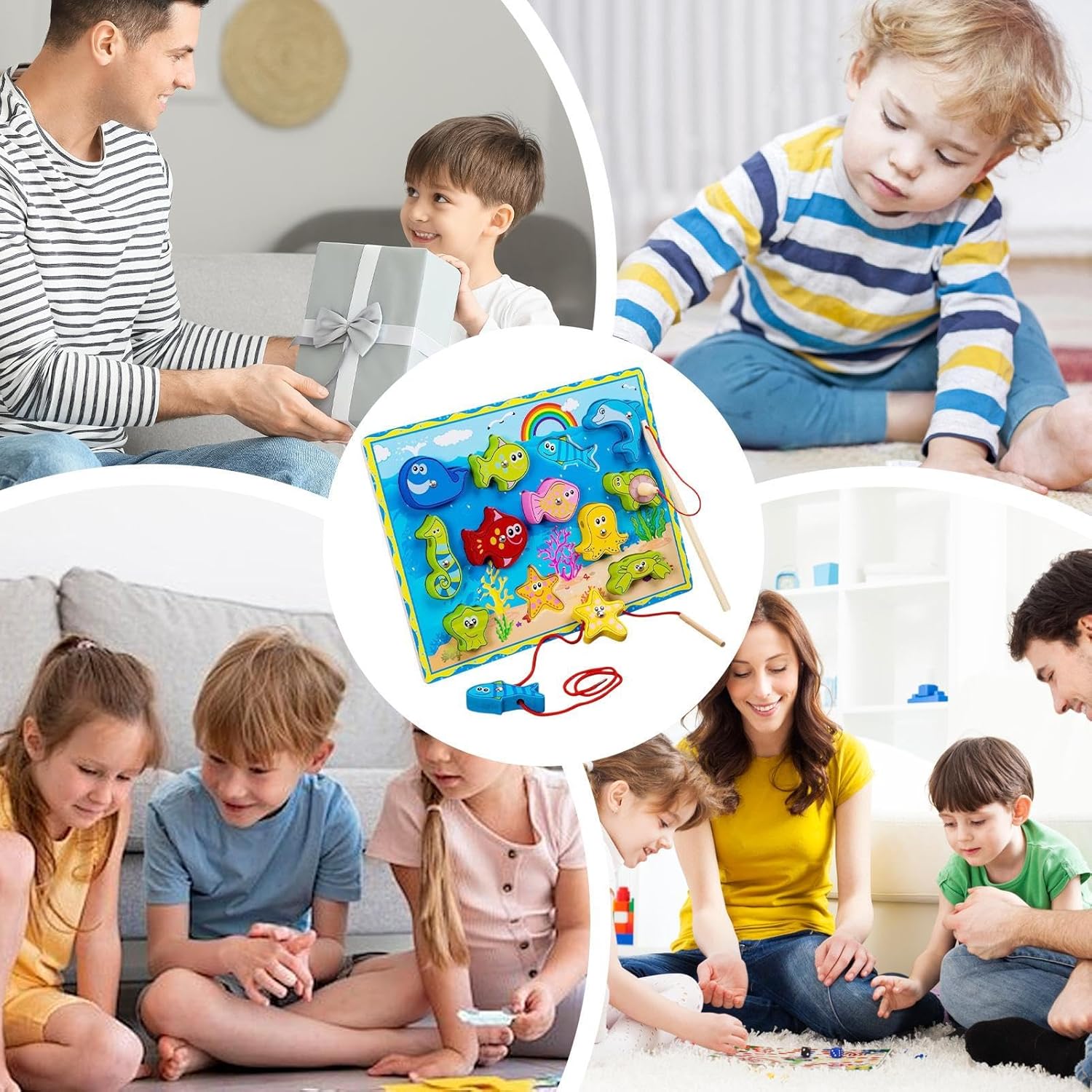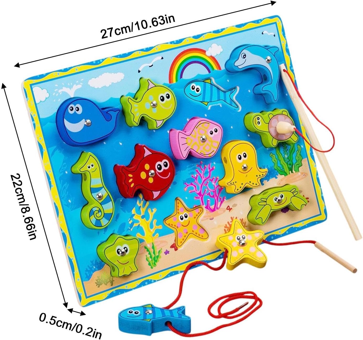 Usi versatili: questo gioco di magnetica consente ai bambini di catturare il pesce con una canna, risolvere enigmi abbinando pezzi a slot corrispondenti e di corde attraverso i buchi per incoraggiare la coordinazione occhio-mano e il pensiero creativo Rafforzare il movimento fine: il nostro gioco di magnetica è progettato per sviluppare il pensiero critico di tuo figlio e le capacità di risoluzione dei problemi. Li aiuta a comprendere le relazioni causa-effetto e incoraggia il gioco fantasioso per favorire la creatività e la comunicazione Incoraggia il pensiero logico: fatti coinvolgere giovani menti con sfide cognitive come identificare forme, colori e animali per migliorare le capacità di risoluzione dei problemi e stimola la curiosità e l'esplorazione Proteggi il bambino: costruito con eccellenti materiali in legno e con superfici lisce, il nostro gioco di magnetica garantisce la massima sicurezza e durata per il bambino di età compresa tra 1 e 3. Il componente magnete è saldamente fisso, prevenendo il distacco accidentale e garantendo un godimento del di gioco di lunga durata Presente meraviglioso: il gioco di magnetica è il regalo per promuovere insieme la famiglia durante i compleanni e le vacanze. Offre e benedizioni fornendo al contempo comodità e divertimento per l'uso quotidiano, rendendolo adatto ad amici o familiari