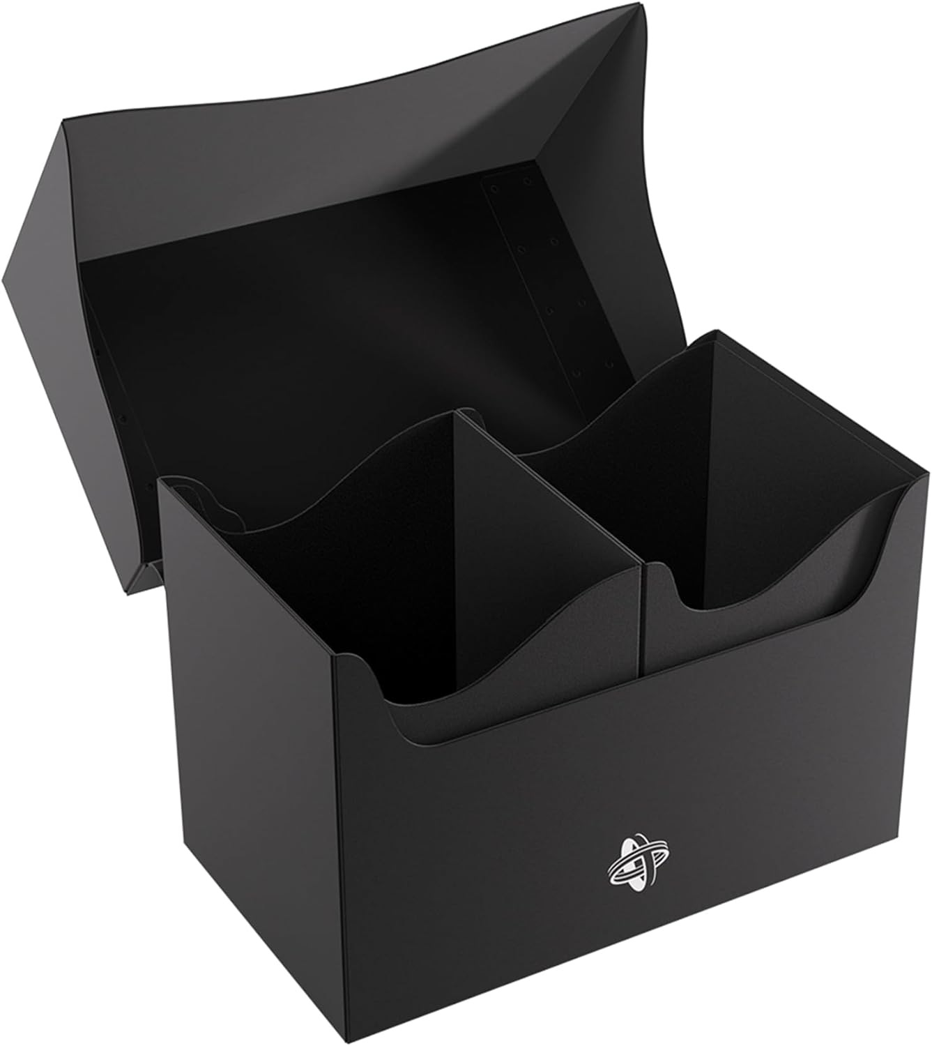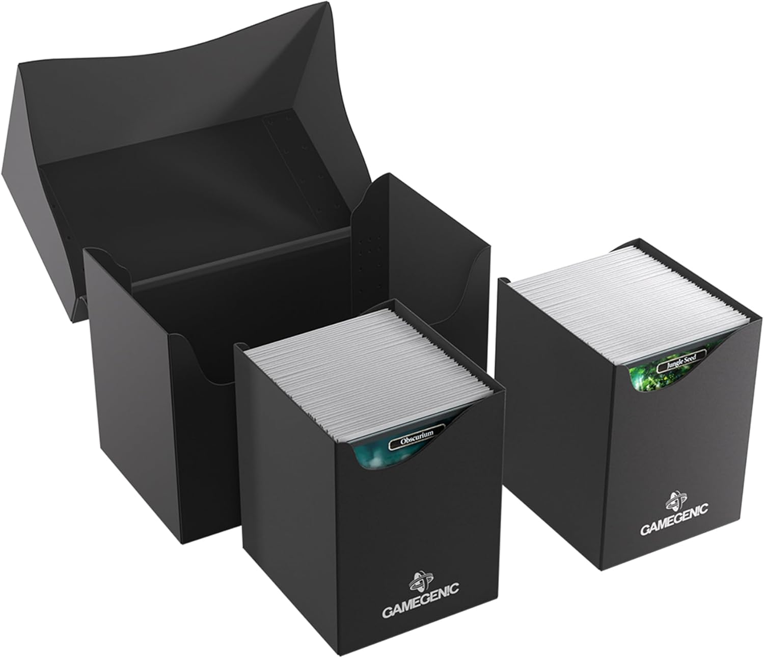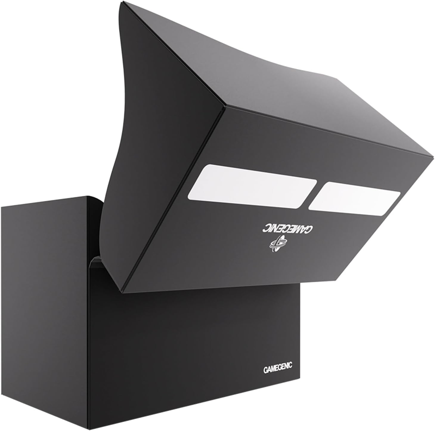 Può contenere fino a 200 carte con doppia manica con buste interne extra spesse. Scatola compatta e robusta con coperchio autobloccante e strisce etichette Include due porta carte estraibili per contenere fino a 100 carte a doppia manica Tecnologia Cobra Neck, la patta può essere aperta fino a 180° per facilitare l'accesso al gioco di carte Adatto per carte di grandi dimensioni e ha forti punti di saldatura, è privo di acidi e non ha PVC Fino a 200 carte con doppia manica con buste interne extra spesse. Colore: nero