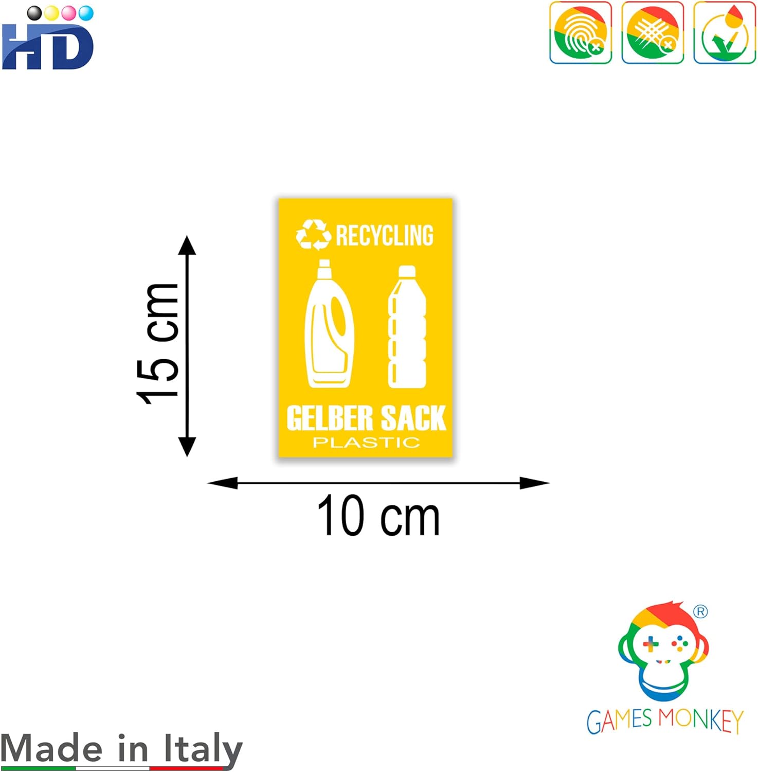 ✅ Adesivi per la raccolta differenziata realizzati in morbido PVC lucido, testo in italiano e inglese con illustrazioni per identificare facilmente i materiali da riciclare; ✅ Adatto per riciclare plastica, carta, vetro, metalli misti e organici. Colori conformi alla norma UNI 11686:2017 per la corretta gestione dei rifiuti; ✅ Impermeabile, resistente all'olio e lavabile, durevole e con buona adesione su superfici lisce e pulite, facile da applicare; ✅ Prodotto da GamesMonkey, stampato su materiali autoadesivi professionali; ✅ Made in Italy, gli articoli realizzati in Italia sono garanzia di qualità e rispetto per l'ambiente, una scelta ecologica;