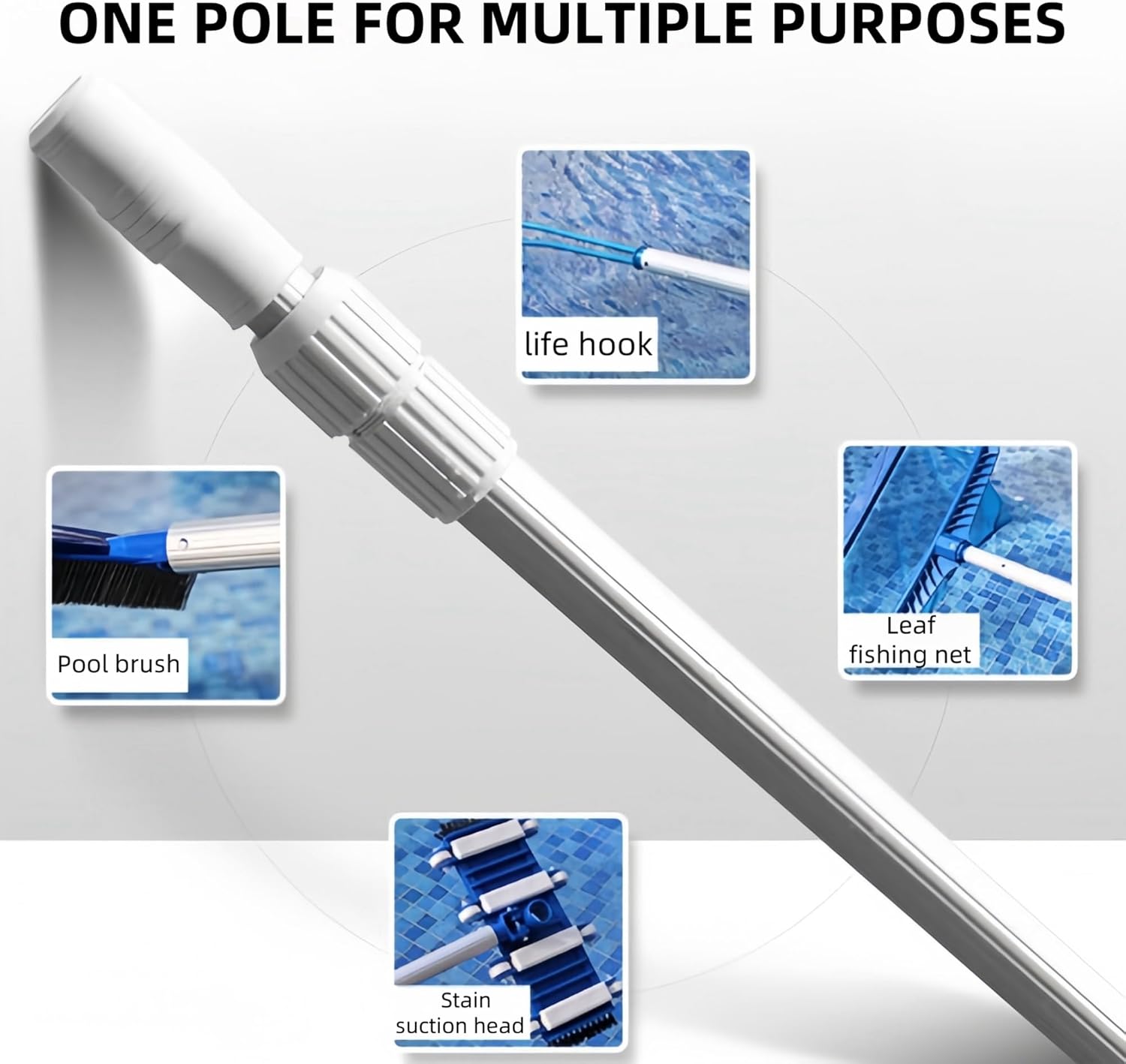 Gancio di sicurezza in alluminio per pali della piscina: il gancio di sicurezza per piscine è realizzato con materiali in alluminio che resistono alle condizioni difficili della piscina. È resistente, robusto e durerà per anni. Gancio di salvataggio estensibile per piscina: poiché l'estate è la stagione delle frequenti attività acquatiche, la sicurezza in piscina e in acqua è una priorità assoluta. Il gancio di salvataggio per piscina non è solo facile da allungare alla lunghezza desiderata, ma può anche aiutarti in qualsiasi situazione. Ovunque ti trovi in acqua, tutto ciò che devi fare è chiedere aiuto ai tuoi soccorritori e possono facilmente tirarti fuori dall"acqua con questo gancio di salvataggio. Multifunzione: i pali di sicurezza per piscine sono una parte importante dell'attrezzatura di sicurezza, un dispositivo di salvataggio di emergenza utilizzato per aiutare i nuotatori in difficoltà o che annegano e dovrebbero essere presenti in qualsiasi piscina o ambiente idrico potenzialmente pericoloso. Ideale per piscine, parchi acquatici, spiagge, yacht, laghi, barche e molto altro ancora. Retrattile: il design retrattile rende il bastone più compatto e salvaspazio quando non in uso. La lunghezza del bastone può essere estesa se necessario, a seconda della situazione, il che è conveniente per i soccorritori. Sono disponibili tre lunghezze retrattili a seconda delle esigenze. I ganci di sicurezza per piscina di Hydrotools sono strumenti multiuso che possono essere utilizzati per una varietà di scopi. Oltre alla sicurezza, sono anche molto adatti per recuperare giocattoli, foglie e altri rifiuti che sono caduti in piscina.