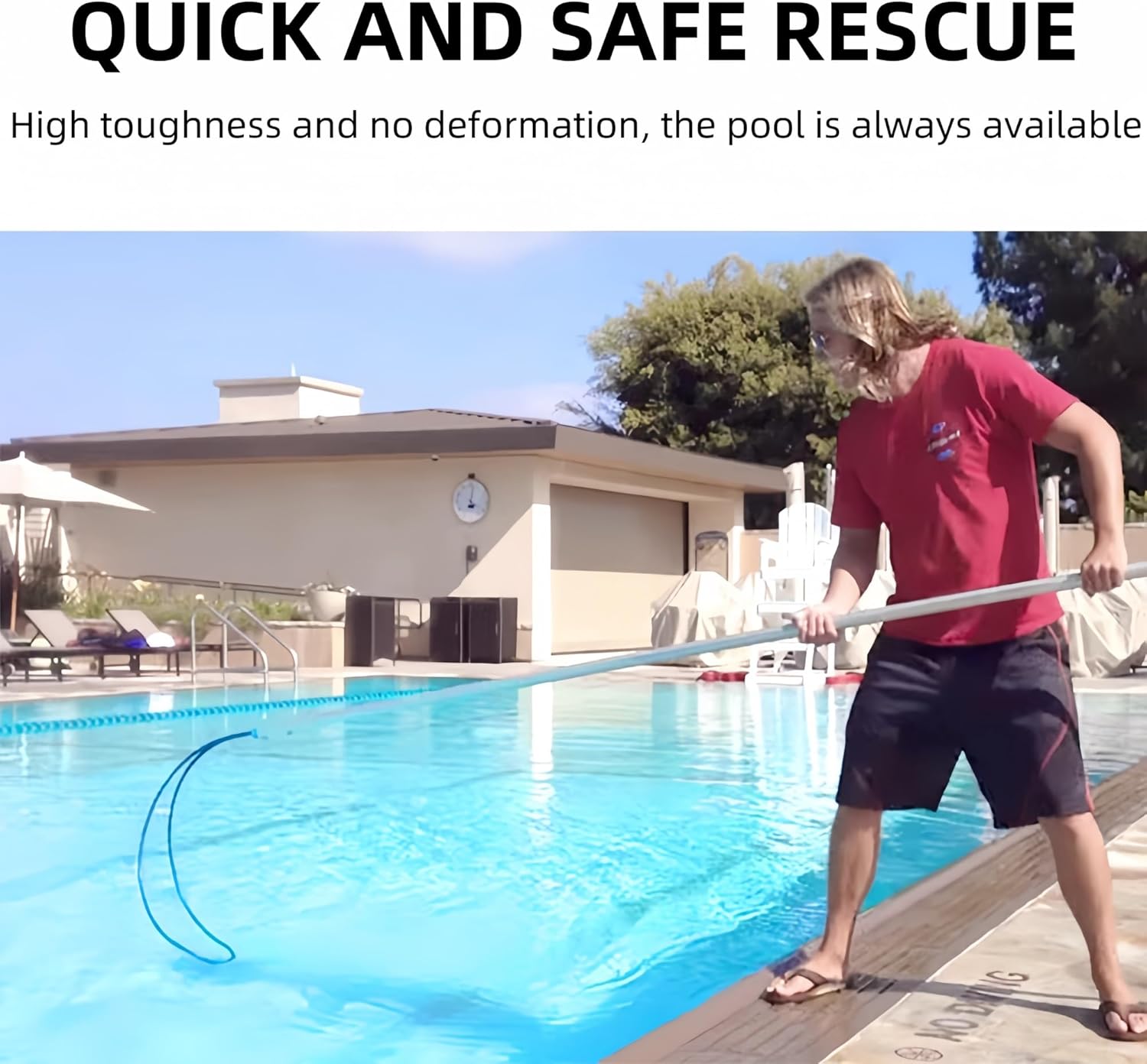 MULTIFUNZIONALE: i pali di sicurezza per piscine sono una parte importante dell'attrezzatura di sicurezza, un dispositivo di salvataggio di emergenza utilizzato per aiutare i nuotatori in difficoltà o che annegano e dovrebbero essere presenti in qualsiasi piscina o ambiente idrico potenzialmente pericoloso. Ideale per piscine, parchi acquatici, spiagge, yacht, laghi, barche e molto altro ancora. RETRATTABILE: il design retrattile rende il bastone più compatto e poco ingombrante quando non in uso. La lunghezza del bastone può essere estesa se necessario, a seconda della situazione, il che è conveniente per i soccorritori. Sono disponibili tre lunghezze retrattili a seconda delle esigenze. SALVATORE PER LA PISCINA: Poiché l'estate è la stagione delle frequenti attività acquatiche, la sicurezza in piscina e in acqua è una priorità assoluta. Il gancio di sicurezza per piscina non solo si estende facilmente alla lunghezza desiderata, ma può anche aiutarti in qualsiasi situazione. Ovunque ti trovi in acqua, tutto ciò che devi fare è chiedere aiuto ai tuoi soccorritori e possono facilmente tirarti fuori dall"acqua con questo gancio di salvataggio. PRATICO & MULTIFUNZIONALE Il bastone di salvataggio è piccolo, leggero e facile da manovrare. Può essere appesa a un gancio o riposta in una credenza della piscina, in modo che sia sempre a portata di mano quando necessario. Oltre alla sicurezza, è anche lo strumento perfetto per pescare vestiti e altri rifiuti. I ganci di sicurezza per piscina di Hydrotools sono strumenti multiuso che possono essere utilizzati per una varietà di scopi. Oltre alla sicurezza, sono anche molto adatti per recuperare giocattoli, foglie e altri rifiuti che sono caduti in piscina.