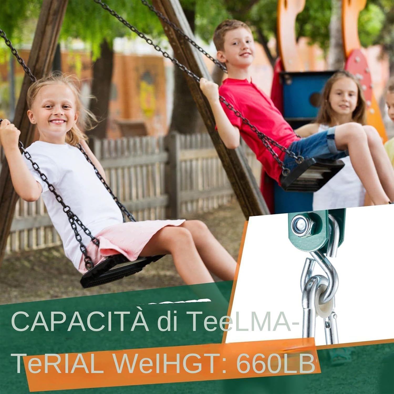 Processo intuitivo: Design user-friendly con elementi numerati e manuale illustrato, include tutti i dispositivi di ancoraggio necessari per un montaggio autonomo in totale sicurezza, per ottenere risultati professionali senza competenze specifiche Design adattabile: Con dimensioni di 14,5 x 9,5 cm e spessore di 3 cm, questi ganci per altalene offrono una vestibilità ideale per la maggior parte dei modelli, garantendo prestazioni affidabili e adattabilità a diverse installazioni grazie alle misure ottimizzate Struttura : la costruzione in acciaio robusto assicura un'eccellente resistenza agli elementi atmosferici, perfetti per un utilizzo esterno continuativo mantenendo integrità strutturale Rinvigorisce le aree gioco: Il design vivace e accattivante favorisce il divertimento all'aperto per i bambini, con una tonalità verde versatile che si abbina con naturalezza agli spazi esterni Utilizzo Multiplo: Ideali per altalene da giardino, strutture gioco e sospensioni su albero, questi ganci garantiscono durata e resistenza per attività all'aperto, migliorano il divertimento e stimolano la creatività in giardino, adattandosi a diverse esigenze funzionali con versatilità comprovata