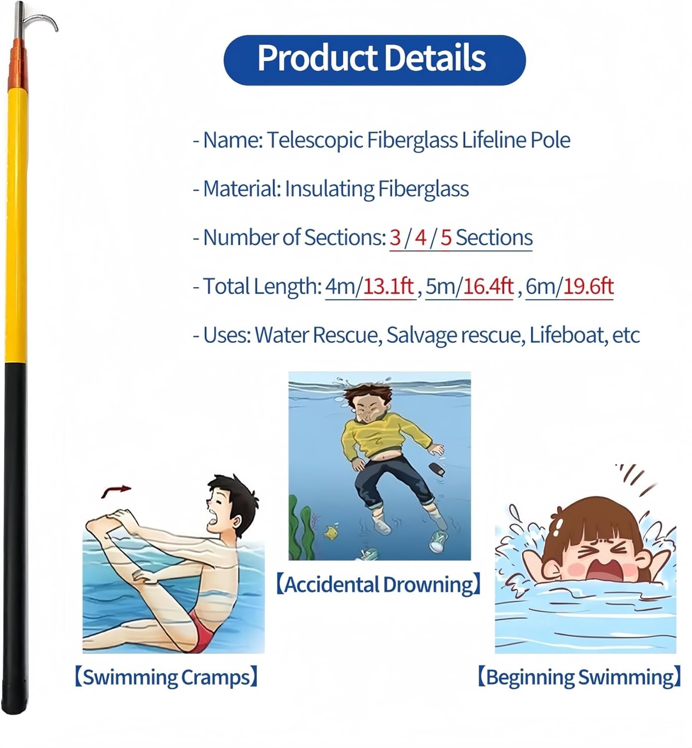 PRATICO & MULTIFUNZIONALE Il bastone di salvataggio è piccolo, leggero e facile da manovrare. Può essere appesa a un gancio o riposta in una credenza della piscina, in modo che sia sempre a portata di mano. Oltre alla sicurezza, è anche lo strumento perfetto per pescare vestiti e altri rifiuti. MULTIFUNZIONALE: il palo di sicurezza della piscina è un importante strumento di sicurezza, un dispositivo di salvataggio di emergenza utilizzato per aiutare i nuotatori in difficoltà o che annegano e dovrebbe essere presente in qualsiasi piscina o ambiente idrico potenzialmente pericoloso. Adatto per piscine, parchi acquatici, spiagge, yacht, laghi, barche, ecc. RETRATTABILE: il design retrattile rende l'asta più compatta e salvaspazio quando non in uso. La lunghezza del bastone può essere estesa se necessario, a seconda della situazione, il che è conveniente per i soccorritori. Sono disponibili tre lunghezze retrattili. ANGOLO DI SALVAGGIO PER LA PISCINA: L'estate è la stagione delle frequenti attività acquatiche e la sicurezza della piscina e dell'acqua viene prima di tutto. Il gancio di sicurezza per la piscina non solo può essere facilmente allungato alla lunghezza desiderata, ma può anche aiutarti in qualsiasi situazione. Ovunque ti trovi in acqua, devi solo chiedere aiuto ai tuoi soccorritori e possono facilmente tirarti fuori dall"acqua con questo gancio di salvataggio. I ganci di sicurezza per piscina di Hydrotools sono strumenti multiuso che possono essere utilizzati per una varietà di scopi. Oltre alla sicurezza, sono anche molto adatti per recuperare giocattoli, foglie e altri rifiuti che sono caduti in piscina.