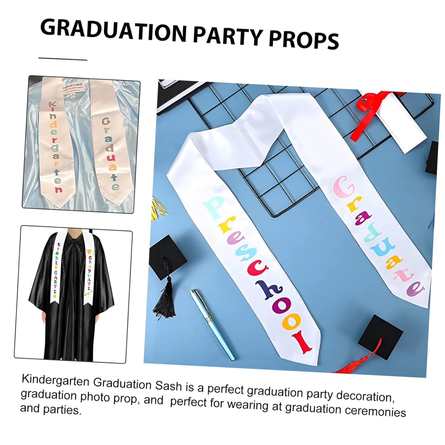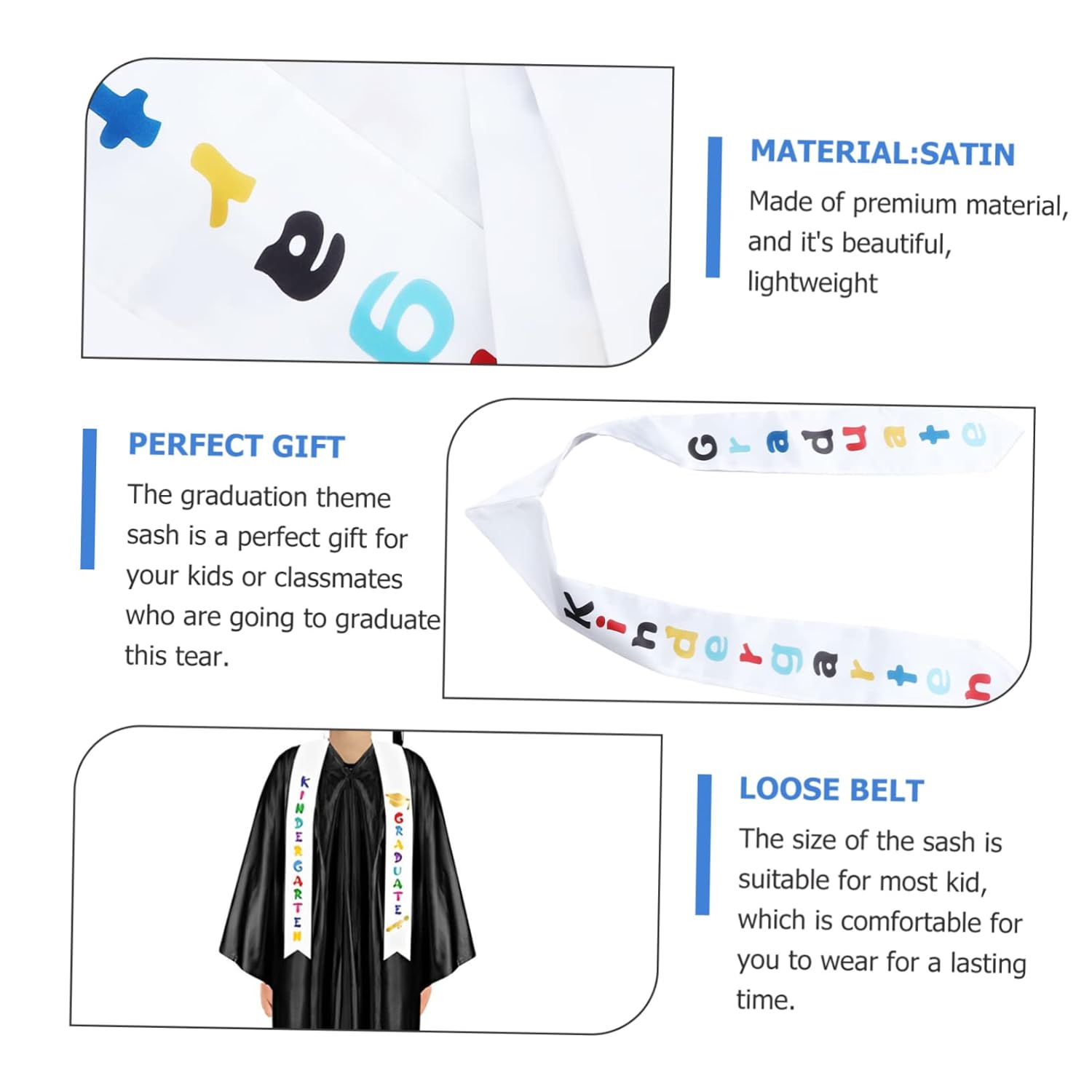 Fasce per l'asilo: taglia unica, la fascia per la laurea in età prescolare è adatta sia per uomini che per donne, versatile e pratica, accessori per feste per la laurea Accessori per la laurea per l'asilo: la semplice fascia per asilo è un accessorio necessario per la cerimonia di laurea, decorativa e speciale, accessori per le feste dell'asilo Fascia per laurea: design con lettere colorate, che rende la tua festa di laurea più attraente e speciale, stola di laurea per l'asilo e la scuola materna Accessori per la laurea dell'asilo: la dimensione della fascia è adatta per la maggior parte, quindi può essere indossata comodamente e per molto tempo. Fascia per nastro per laurea Accessori per feste di laurea per la scuola materna: puoi usarla come supporto fotografico per scattare foto da condividere con familiari e amici, fascia per feste di laurea