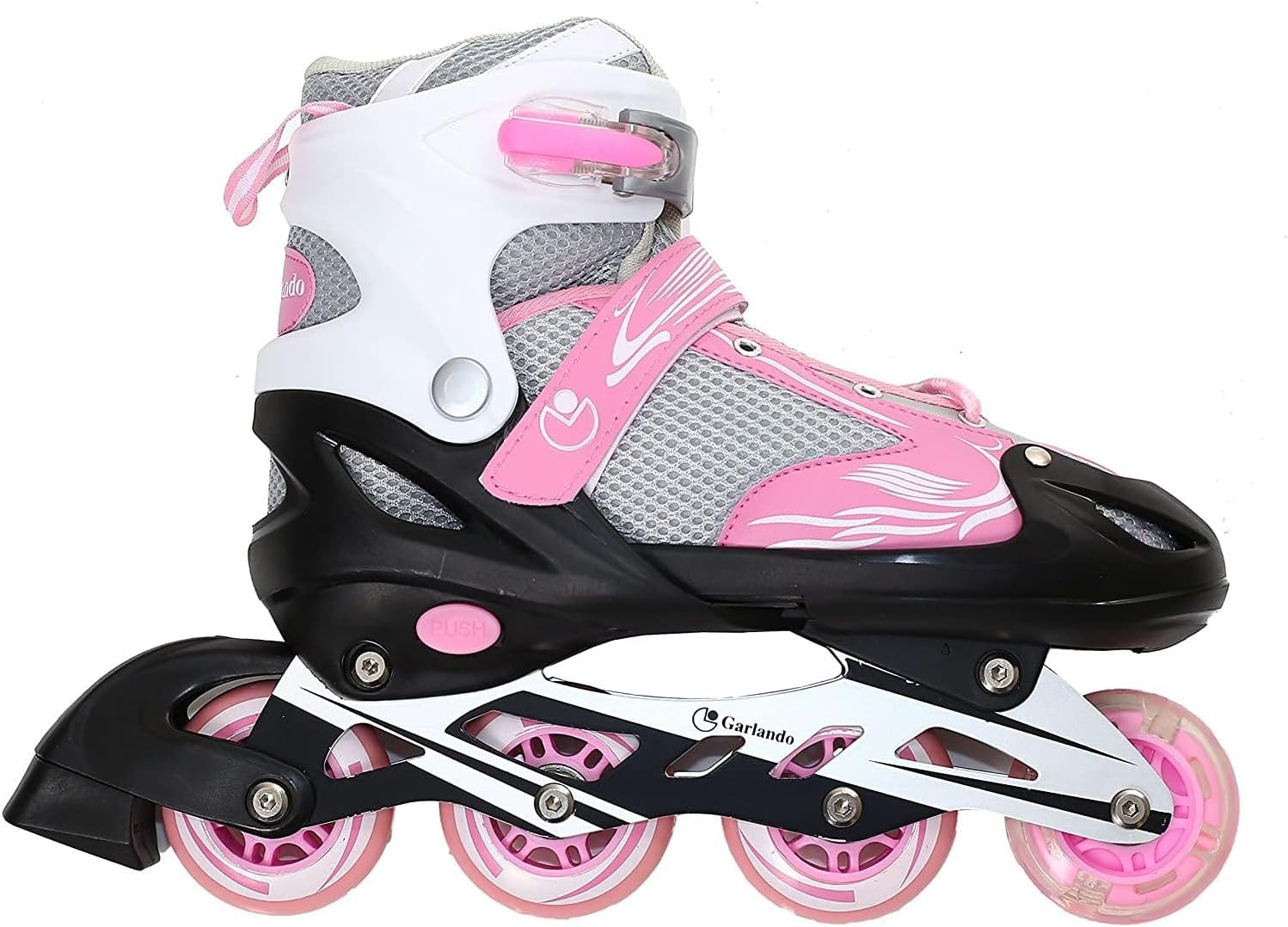 Scarpa: imbottita antisudore Cuscinetti a sfera di precisione, tipo ABEC 7 Asse ruota: alluminio - spessore 2 mm Sistema di chiusura con lacci, cinturino e leva Peso utente min/max consigliato: 20/40 kg