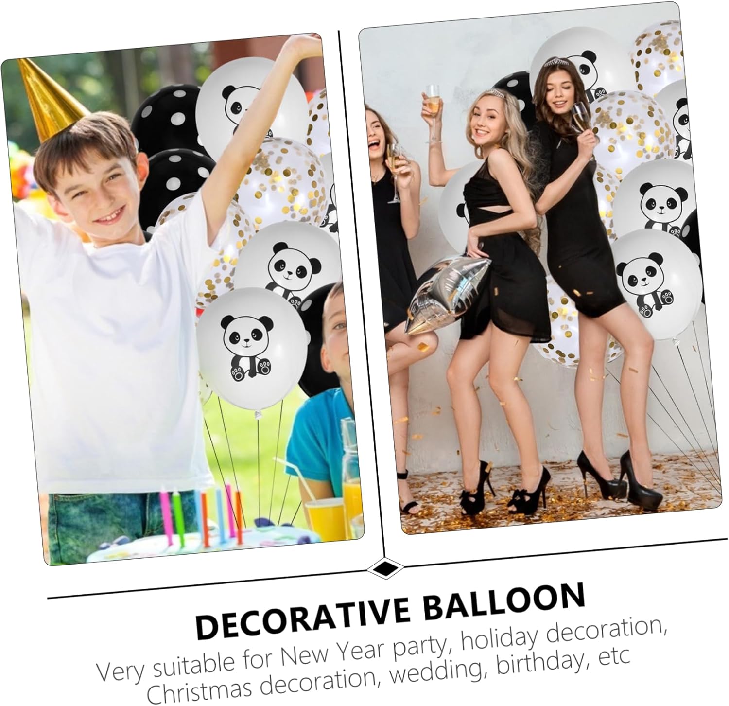 Balloon per feste-il prodotto comprende 15 pezzi palloncini in lattice e nastro nero, resistente all'usura e, classico e bello, palloncino in lattice Palloncino decorativo: puoi decorarli ovunque tu voglia, ad esempio, camera da letto, soggiorno, giardino per celebrare le tue vacanze, palloncini con paillettes Decorazioni per feste di compleanno-adatte a qualsiasi palloncino decorativo per feste a tema, combinazioni abbinate, molto facile da usare, palloncino con paillettes Palloncini per motivi animali Palloncini panda: questi palloncini non sono facili da perdere aria e sono facili da conservare, forniture per feste
