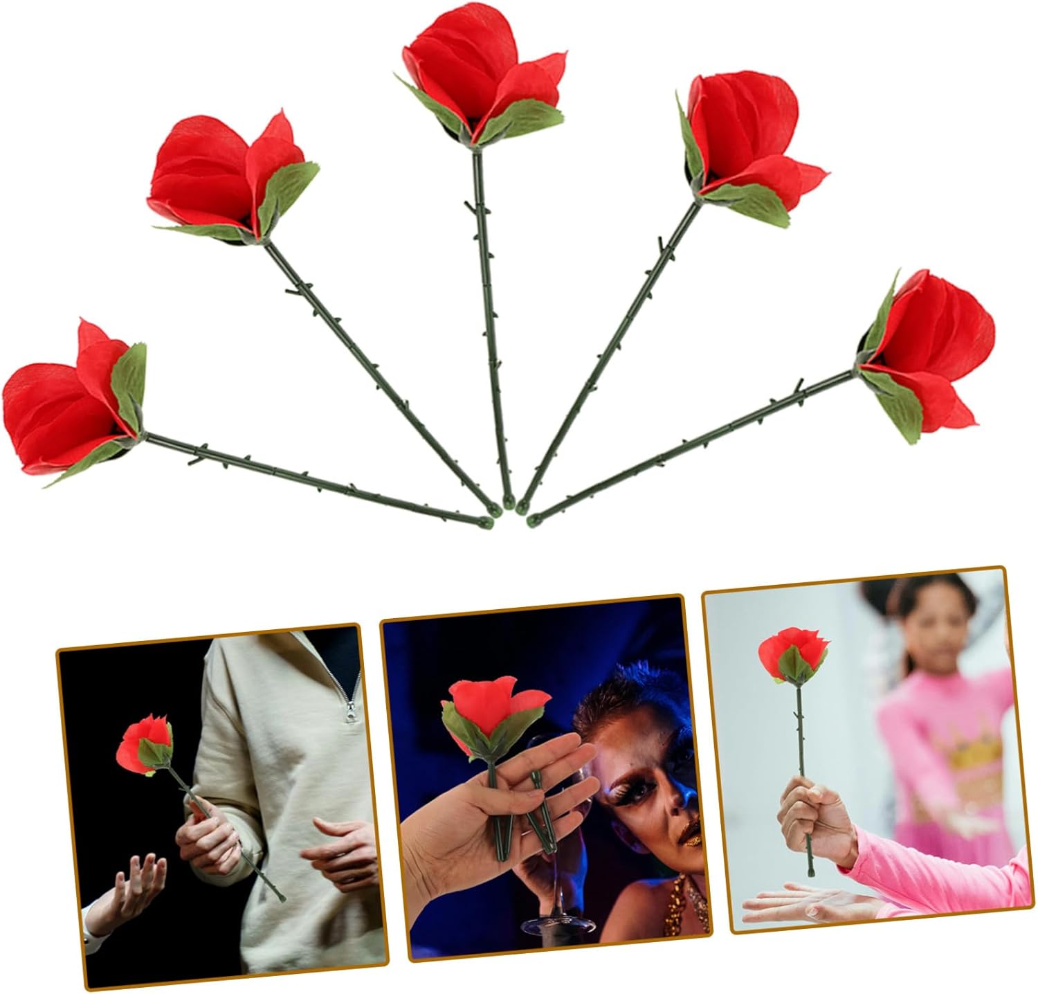Rose pieghevoli: progettate con tecniche speciali, queste rose pieghevoli presentano un aspetto elegante, ideale per qualsiasi presentazione, fiore di rosa Trucchi seta a fiore: uso versatile: ideale per spettacoli teatrali, bar, feste, spettacoli a casa e, aggiungendo un tocco di stile a qualsiasi evento, rosa che appare, fiore che appare da vicino Trucchi fiore: incantevole: il design pieghevole ti consente di creare varie forme di rosa, offrendo un'esperienza per il tuo pubblico, decorazioni per feste di rose, fiori di rosa pieghevoli Facile da maneggiare: semplice da usare senza bisogno di tecniche avanzate, il che lo rende ideale per principianti che per professionisti, oggetti di scena, rosa Fiore pieghevole: realizzate con precisione, queste rose pieghevoli hanno un aspetto sorprendente, per qualsiasi pubblico in un fiore da mago ingannevole