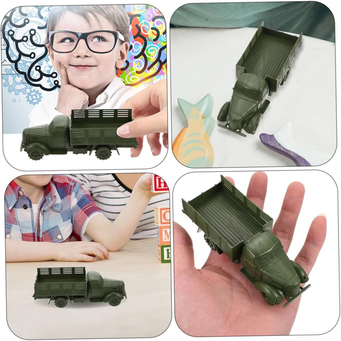 Design realistico: questi mini giocattoli di camion dell'esercito sono progettati con precisione per rispecchiare i camion della vita reale, offrendo un'esperienza realistica, giocattolo di veicoli in plastica, mini giocattoli di veicoli Decorazioni per scene in miniatura: ideali per creare scene dettagliate e in miniatura, migliorando l'attrattiva visiva di qualsiasi allestimento, camion giocattolo, auto giocattolo per Usi multipli: adatto per modelli di tavoli da sabbia, pezzi decorativi o come giocattoli per , fornendo per l'uso, di veicolo, di auto giocattolo Articolo da collezione: ideali per i collezionisti, questi modelli aggiungono autenticità ed emozione a qualsiasi collezione, di camion giocattolo, mini camion di plastica Benefici educativi: insegnare ai i veicoli e il loro significato storico attraverso giochi interattivi ed educativi, giocattoli di veicoli militari, modelli di auto in plastica