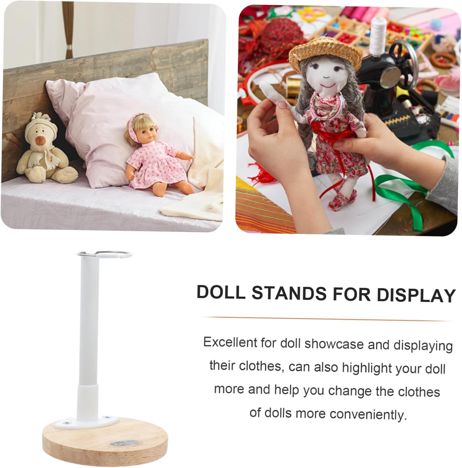 Accessori per negozi: facili da usare, mantengono la bambola in posizione eretta fissandone la testa, supporti per bambole da esporre Supporto per bambole: puoi portare questi supporti per bambole come di natale o di compleanno per coloro a cui piacciono le bambole e saranno molto felici, espositore per bambole I supporti per bambole mostrano: adottando il design del supporto per la testa, la bambola non cade facilmente, stand Supporto per bambole: può stare in piedi in modo stabile su una superficie liscia, lavorazione artigianale di qualità, non rompe facilmente, supporto per bambole Espositore per negozi -- materiale in legno robusto, sicuro e, struttura semplice e robusta per contenere le bambole, robusto espositore in legno