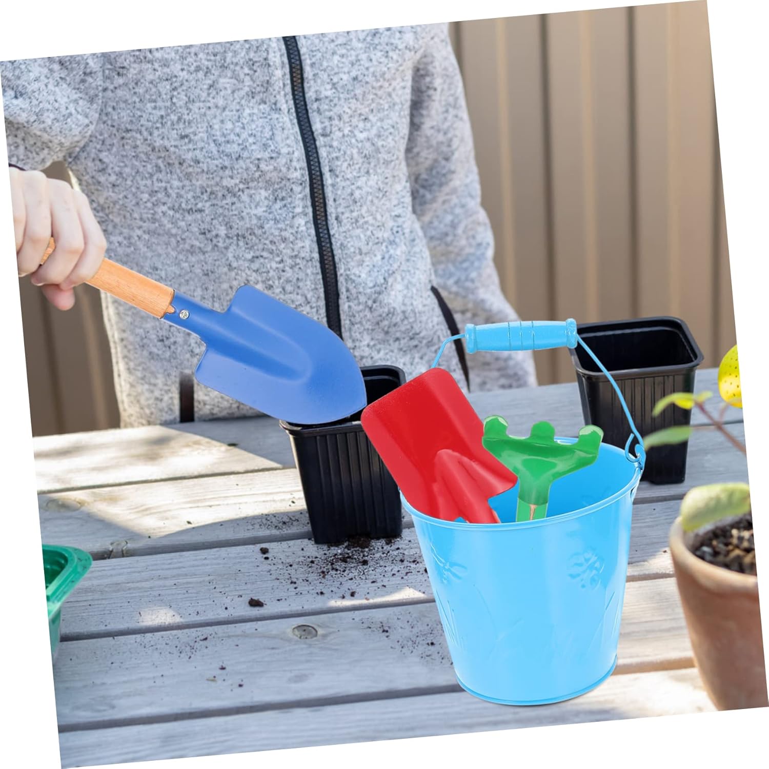 Attrezzo da giardinaggio per bambini: adatto alle manine dei più piccoli, non troppo affilato, non troppo pesante e senza bordi, attrezzi da giardinaggio per bambini Attrezzi da giardino per bambini: i bordi sono lisci e arrotondati, senza sbavature e non danneggiano la pelle, attrezzi da giardino per bambini Attrezzi per bambini piccoli: progettati appositamente per i bambini, leggeri e maneggevoli, adatti per piantare fiori e ortaggi, attrezzi da giardinaggio Attrezzi da scavo per bambini: superficie lucidata con cura, la superficie è liscia e non farà male tuo , sicura e affidabile, giocattolo da piantare per bambini Giocattoli da piantare per bambini: di piccole dimensioni e leggeri, il tuo può afferrare facilmente questi attrezzi da giardinaggio per bambini, rastrello e pala, giocattolo da giardinaggio per bambini