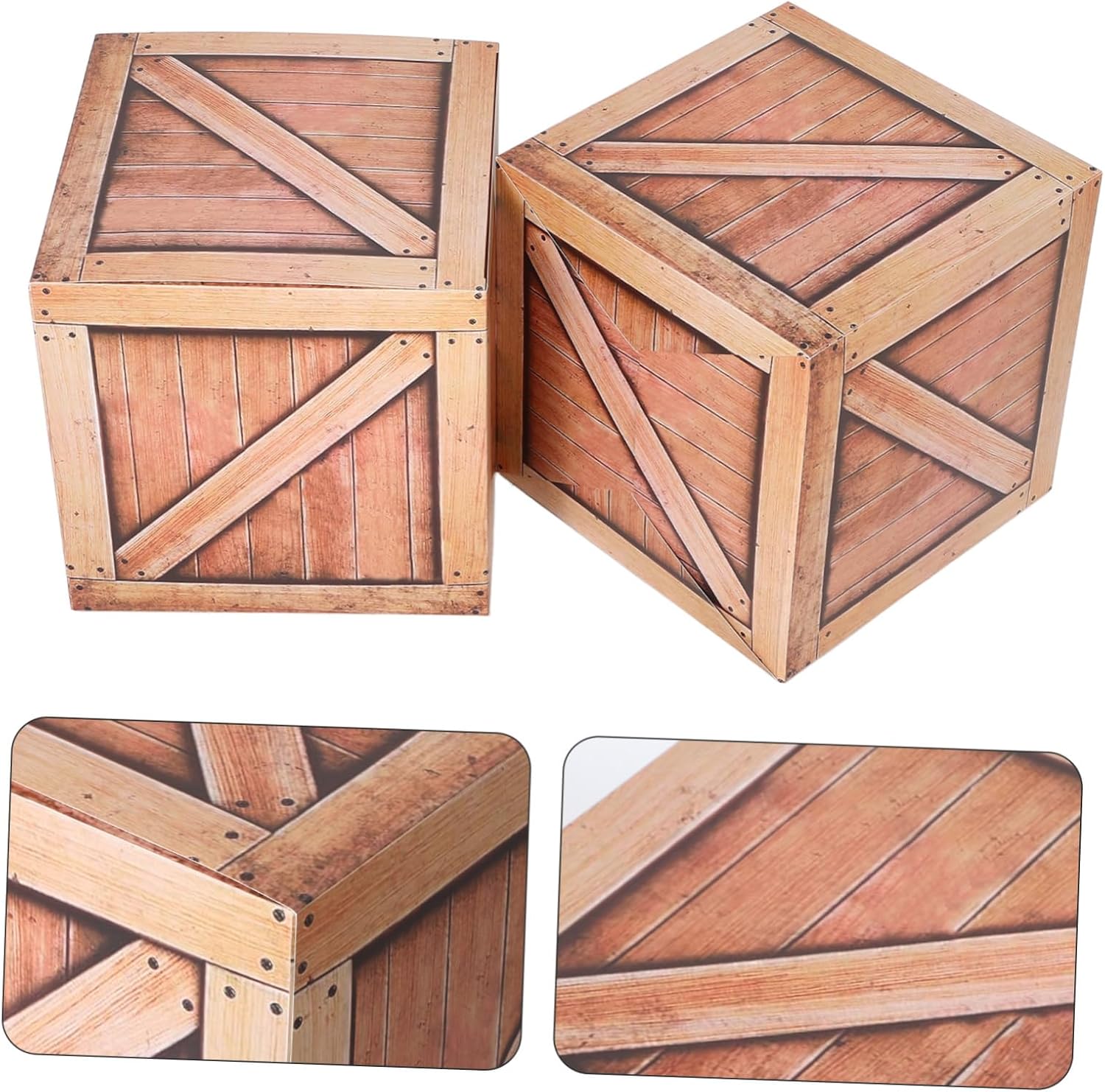 Tema cowboy western: aggiungi un tocco unico alla tua festa con le nostre scatole, ideali per creare un'autentica atmosfera del selvaggio west Elevato realismo: queste scatole di carta di legno di simulazione sono progettate per sembrare vere casse di legno Creativo: i nostri oggetti decorativi in finto legno sono progettati in modo creativo per aumentare il divertimento e l'eccitazione della tua festa Uso versatile: queste scatole non sono solo per decorazioni per feste; possono anche essere utilizzate come centrotavola Indispensabile per le feste: con due pezzi inclusi, queste scatole decorative sono sufficienti per soddisfare le esigenze della tua festa o evento