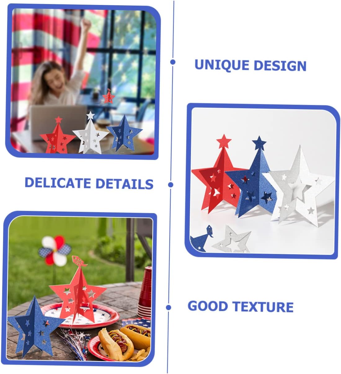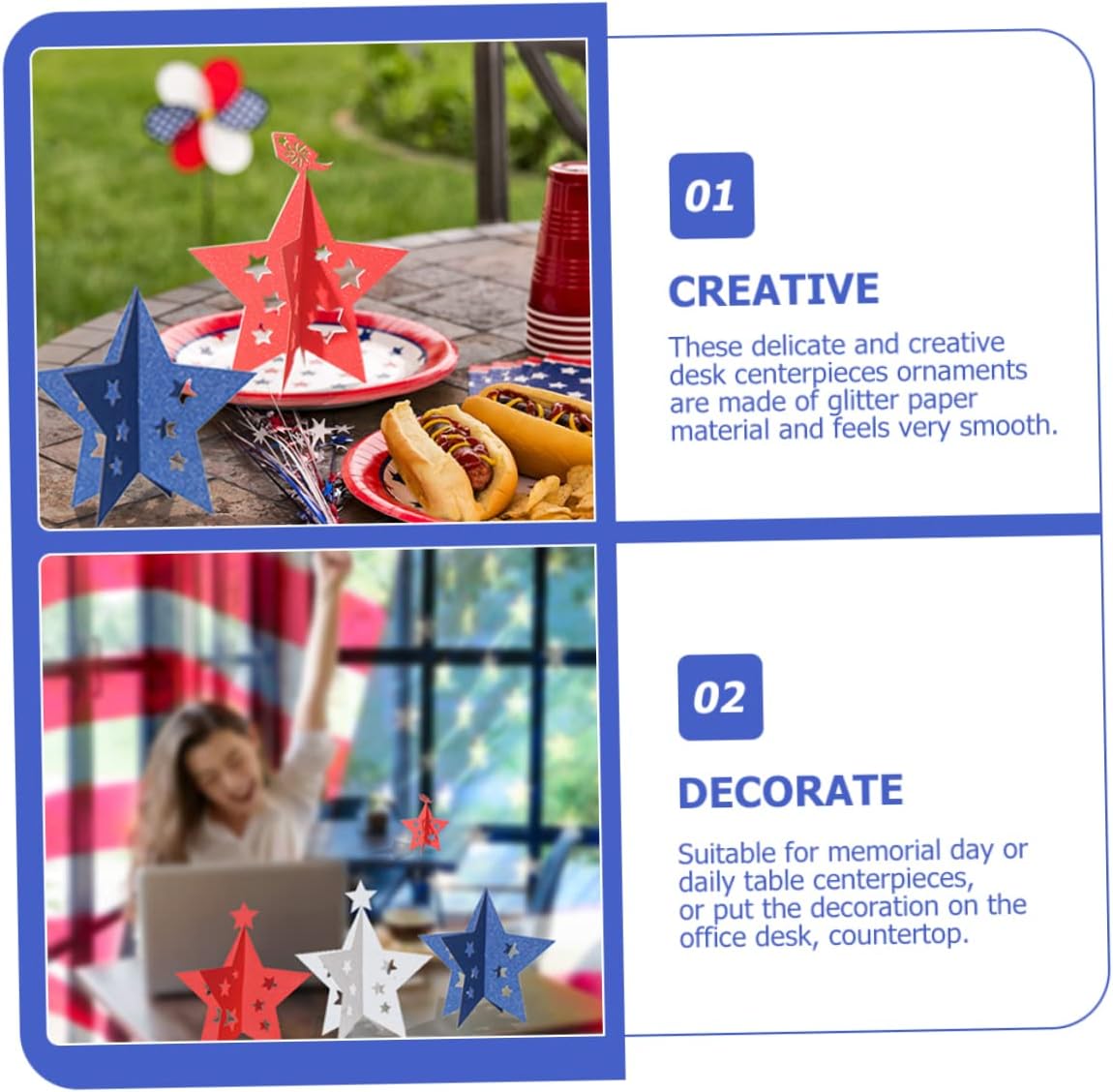 Decorazioni per la tavola del memorial day: possono essere applicate in diversi luoghi e occasioni, come piano di lavoro, armadietto, scaffale, scrivania e così via. Arredamento patriottico: il design è ragionevole, vivido, bello e altamente decorativo. questa è una buona scelta per il tuo . Forniture per feste del dell'indipendenza: quantità sufficiente e design adorabili possono facilmente soddisfare le tue esigenze di decorazione del dell'indipendenza. Targa tavolo con stella patriottica: piccola e resistente, non facile rompere, chic, questa è una decorazione scrivania molto eccellente. Centrotavola: possono essere posizionati sul tavolo o ovunque tu voglia in soggiorno, tavolo pranzo, ristorante e ufficio.