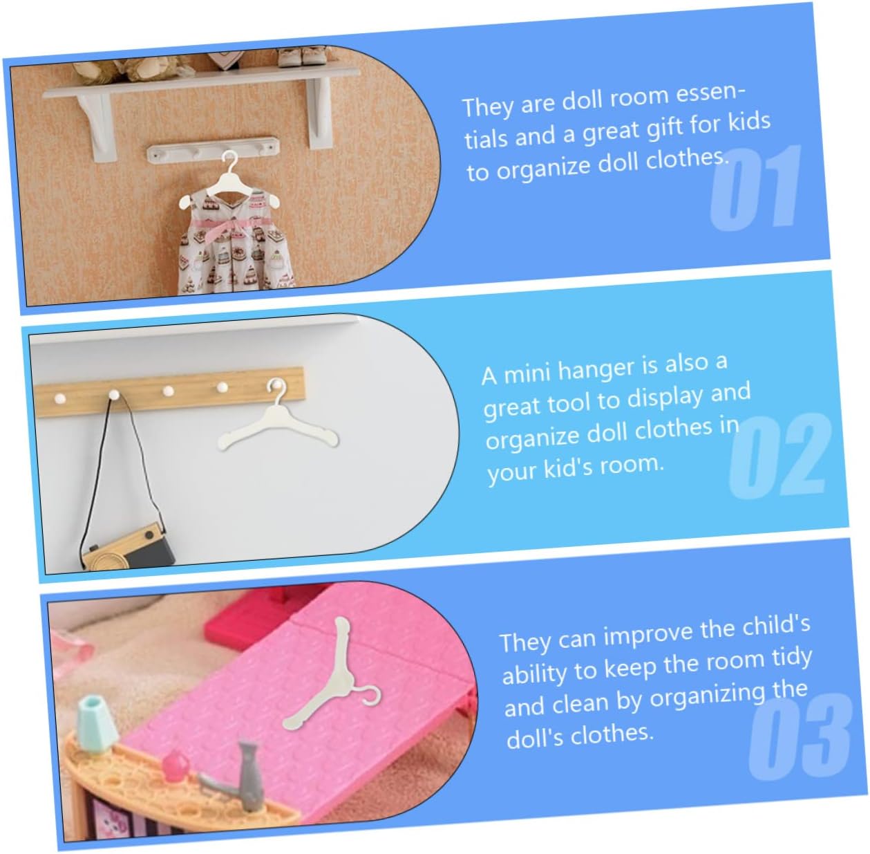 Mini accessorio per casa delle bambole: sono elementi essenziali per la stanza delle bambole e un ottimo per i bambini per organizzare i vestiti delle bambole, mini appendiabiti per casa Grucce in plastica per vestiti: per riporre i vestiti delle bambole, proteggere i mini vestiti da danni e sporco, un accessorio indispensabile per la casa delle bambole, mini grucce Gruccia per vestiti in miniatura: il di compleanno o di festa per i bambini che amano le bambole, regala loro una piccola sorpresa, supporto per vestiti in miniatura Gruccia per in miniatura: il materiale robusto e plastico rende queste grucce per bambole utilizzabili a lungo, mini gruccia per Mini gruccia: processo di lucidatura fine, sensazione di morbidezza tatto, aspetto semplice, molto pratica, grucce minuscole