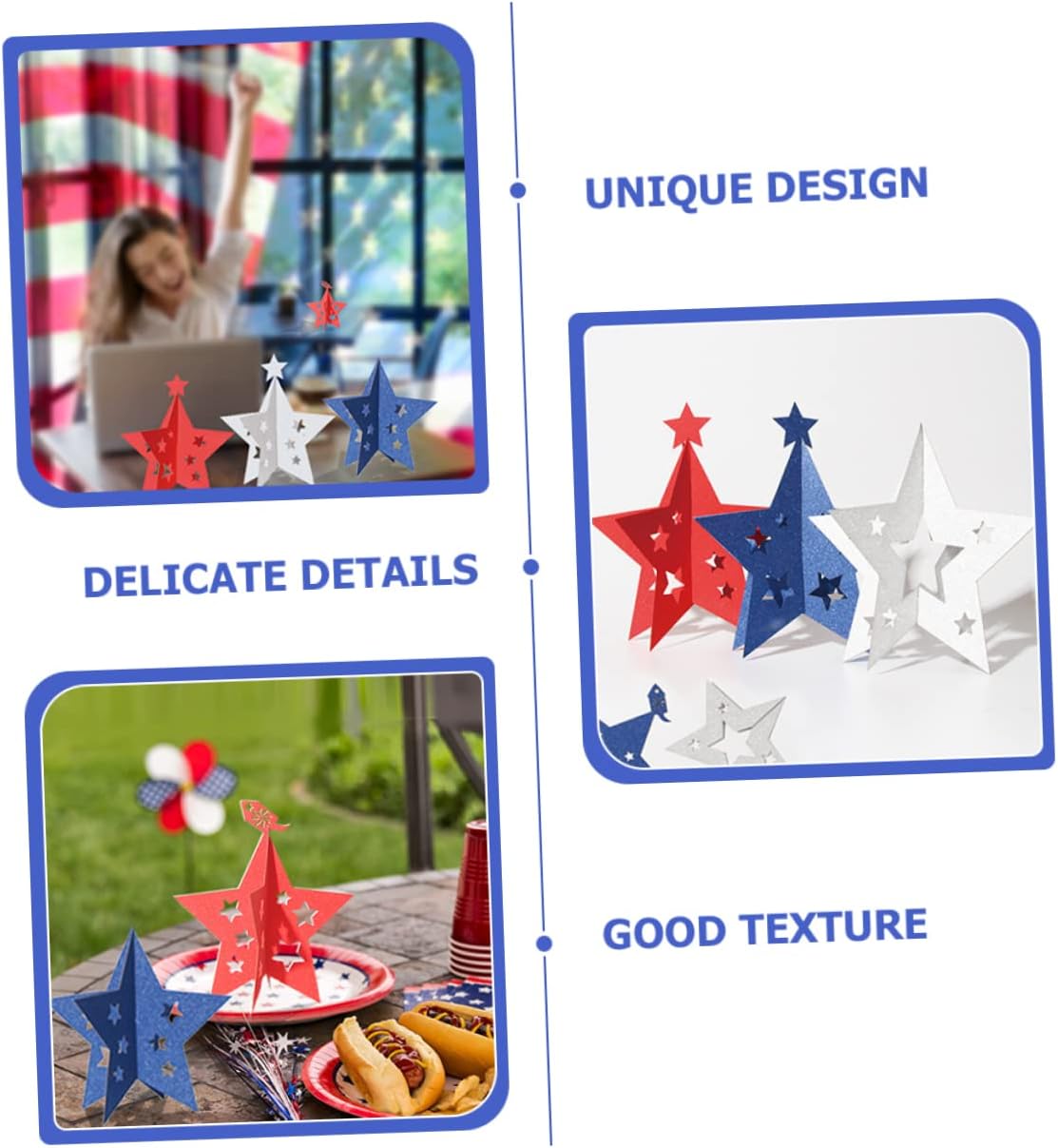 Centrotavola: quantità sufficiente e design adorabili possono facilmente soddisfare le tue esigenze di decorazione del dell'indipendenza. Patriottico-- decorazione tavolo del 4 luglio, centrotavola con stella patriottica, insegna in legno, per il dell'indipendenza, topper per tavolino per feste patriottiche in aula Festa patriottica: lavorazione eccellente, luminosa e , non facile sbiadire o danneggiare, può soddisfare meglio le tue esigenze decorative. Decorazioni per la tavola del memorial day: adatte per occasioni a tema patriottico, come il 4 luglio, il della memoria, il dell'indipendenza e così via. Centrotavola per la casa-- piccolo e, non facile realizzare, chic, questa è una decorazione scrivania molto eccellente.