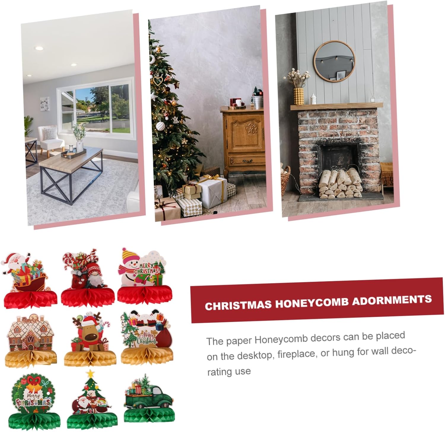 Accessori per l'organizzazione della festa: le decorazioni in carta a nido d'ape possono essere posizionate sulla scrivania, sul caminetto o appese per decorare pareti o decorazioni natalizie per la casa Decorazione festiva: la pregevole fattura garantisce una stampa chiara del motivo e un design delicato dei dettagli, pratico da usare, decorazioni per feste di natale Oggetti di scena decorativi natalizi: questo set centrotavola a nido d'ape è realizzato con materiale cartaceo, pratico per l'allestimento della scena della festa, ornamenti per feste di natale Decorazioni natalizie a nido d'ape: questi centrotavola natalizi a nido d'ape possono essere utilizzati anche come accessori fotografici per scattare foto, decorazioni natalizie molto pratiche a nido d'ape Decorazioni natalizie: questo creativo centrotavola a nido d'ape è pronto per decorare l'intera casa, facile da creare un'allegra atmosfera di festa, centrotavola natalizio a nido d'ape