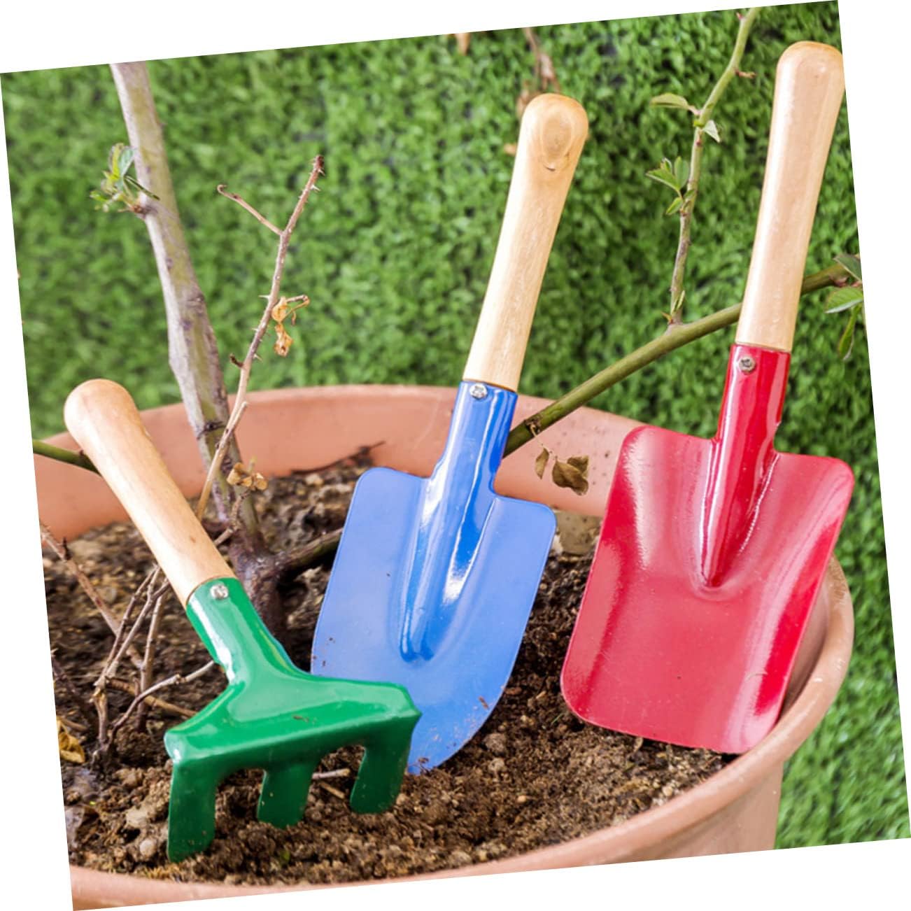 Giocattolo con attrezzi da giardino: di piccole dimensioni e leggero, i tuoi bambini possono afferrare e tenere facilmente questi secchi, piccola pala da giardino Mini rastrello da giardino: la struttura leggera, il design ergonomico e le impugnature touch garantiscono un giardinaggio confortevole, riducendo contempo dolore e affaticamento. Giocattoli con secchielli di sabbia: ottimi per la spiaggia, il cortile e molto altro, semplici ma divertenti, regaleranno ai tuoi bambini un'infanzia piacevole, paletta giocattolo estiva Giocattoli estivi per bambini: design con manico in legno, facili da afferrare, attrezzi da giardino. pale e secchi da giardino per bambini. Giocattoli da spiaggia per bambini: strumenti comodi e pratici per trapiantare piante in vaso, piante da appartamento, piante da contenitore, ecc., pale da sabbia per bambini