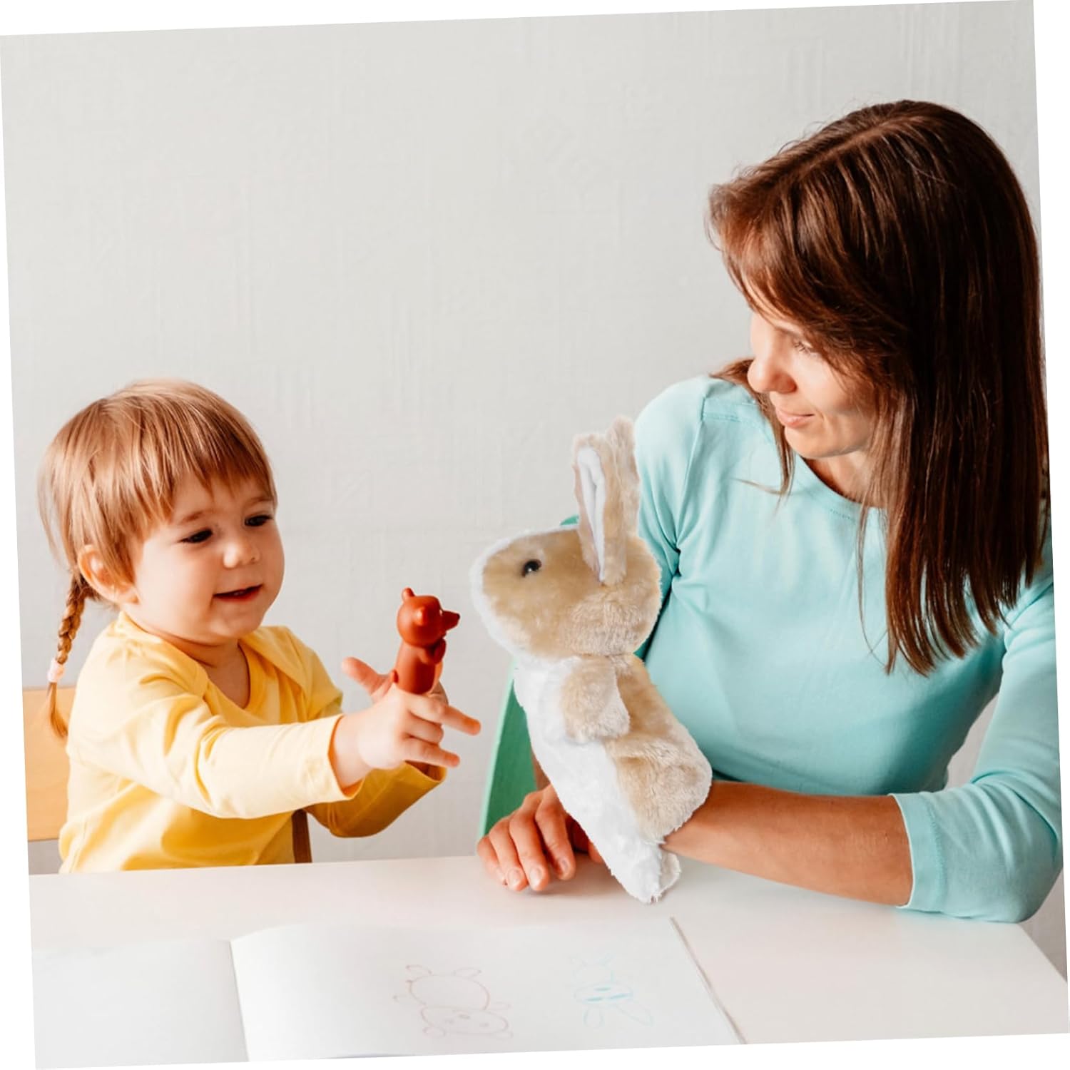 Giocattoli a forma di coniglio: ottimi per migliorare il rapporto genitore-figlio e aiutare i genitori a creare un con i figli, pupazzi a forma di coniglio Bambola coniglio: ottimi giocattoli interattivi per la casa, la scuola, l'asilo e altri centri di apprendimento, marionetta da dito a forma di coniglio Statuetta di coniglietto: indossala sulla mano per raccontare una ai tuoi bambini, puoi goderti il tempo in famiglia e iniziare l'apprendimento precoce dei tuoi bambini in un'atmosfera così , pupazzo di peluche a mano Peluche con personaggio dei cartoni animati: puoi usarlo per comunicare con i tuoi bambini e migliorare la loro capacità di comunicazione, giocattoli con marionette a mano Mano di coniglio: realizzata in materiale resistente e durevole, giocattolo per conigli