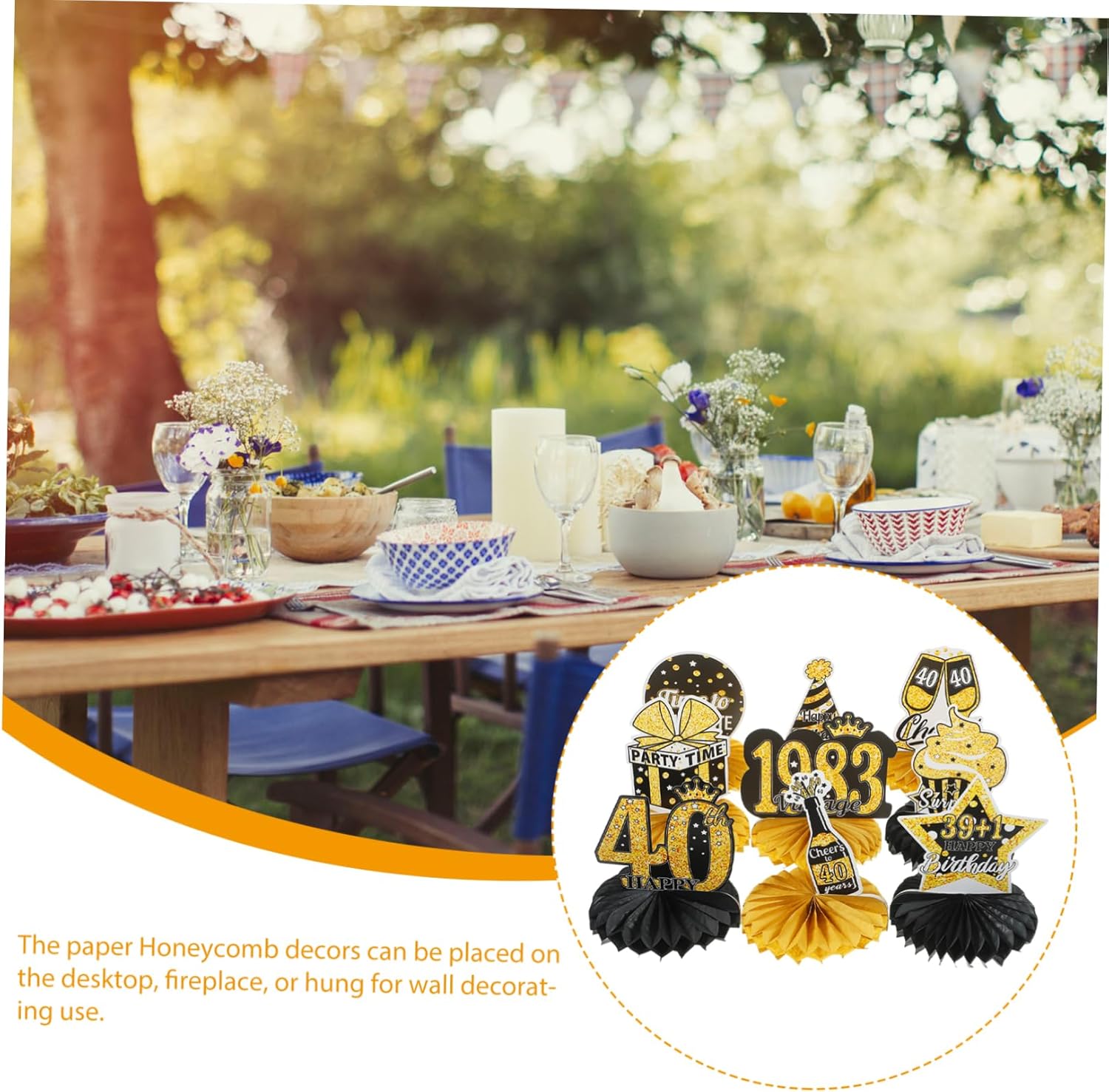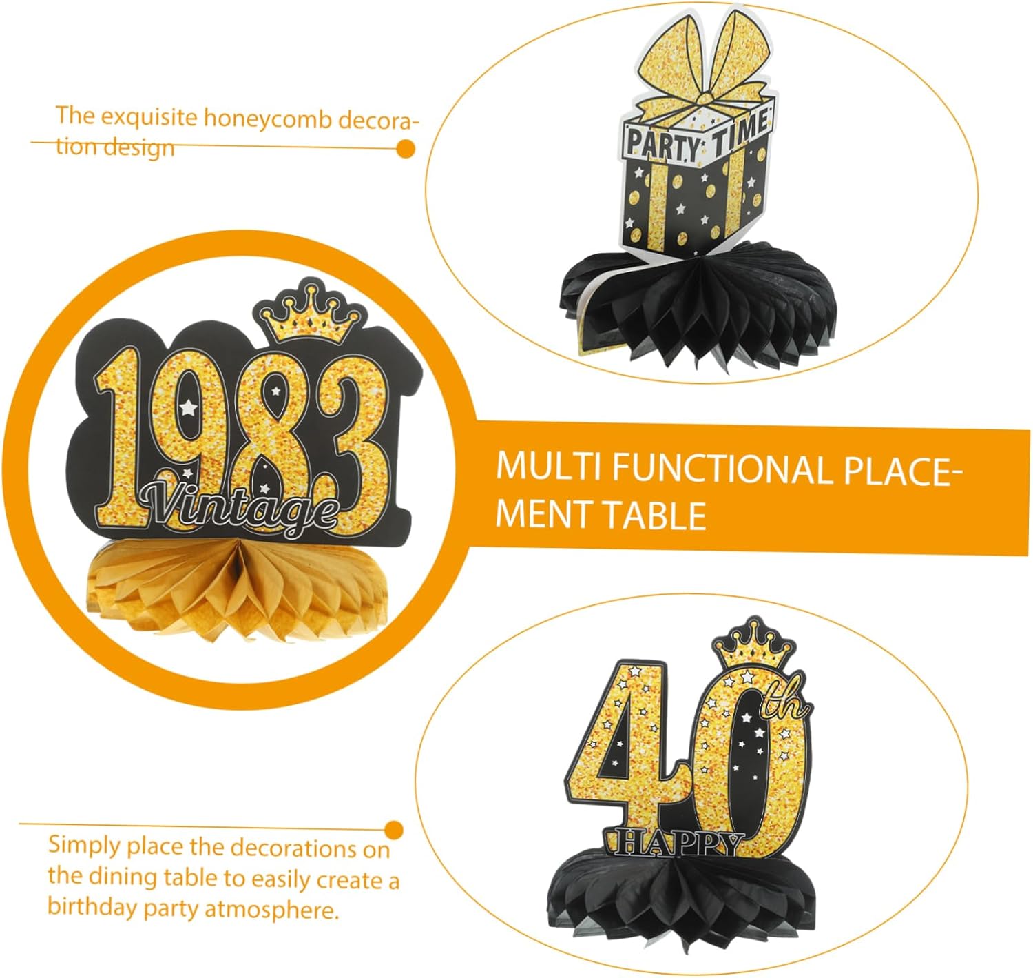 Centrotavola di 40 anni: il centrotavola a nido d'ape è adatto per feste di compleanno, decorazioni per la casa e altro, può essere utilizzato come decorazione di sfondo per aggiungere un'atmosfera alla festa, forniture per feste di compleanno. Decorazioni per la tavola della festa di compleanno: il design classico del modello di compleanno rende queste decorazioni a nido d'ape più uniche e attraenti, design creativo di palline a nido d'ape, ornamento di compleanno. Prop per il layout della festa: le decorazioni a nido d'ape progettate a tema compleanno sono molto creative, adatte per il layout della scena della festa, oggetti di scena decorativi per feste di compleanno. Centrotavola per il 40° compleanno: meravigliosi accessori fotografici per scattare foto indimenticabili con le tue famiglie e i tuoi amici, saluti a 60 anni di nido d'ape. Arredamento: hanno un'ampia occasione applicabile, non solo adatti per feste di compleanno, ma anche feste di capodanno, feste di anniversario e così via, ornamenti a nido d'ape di compleanno.