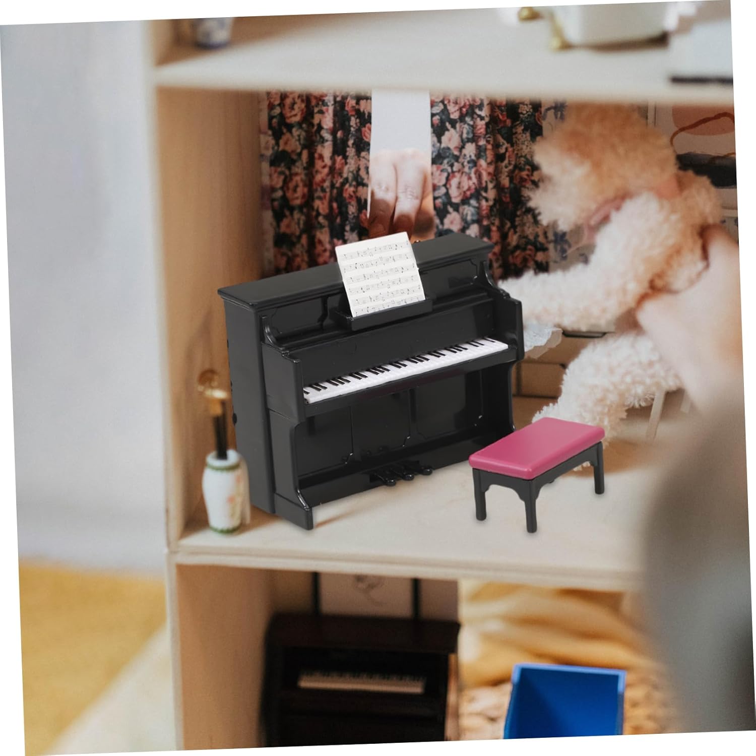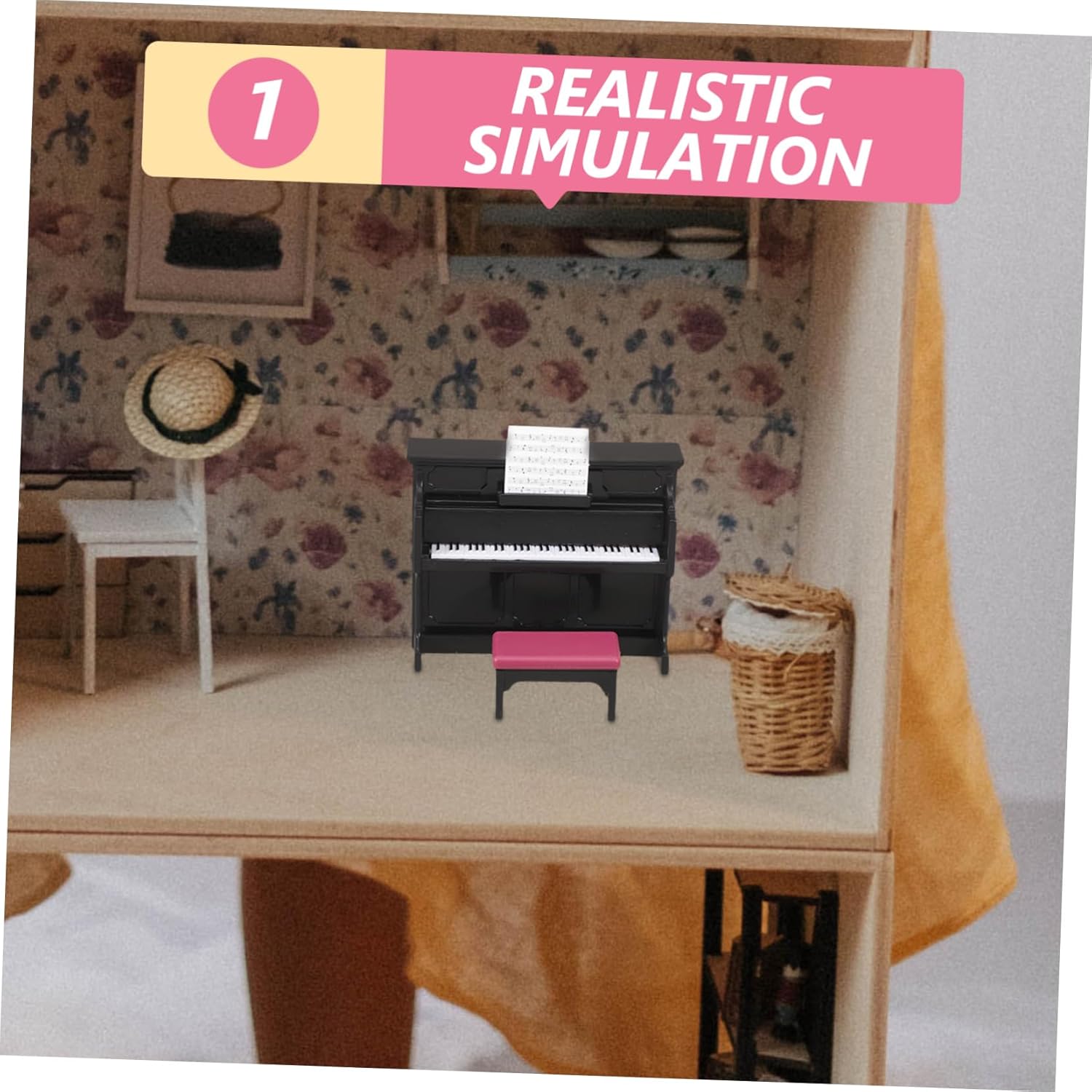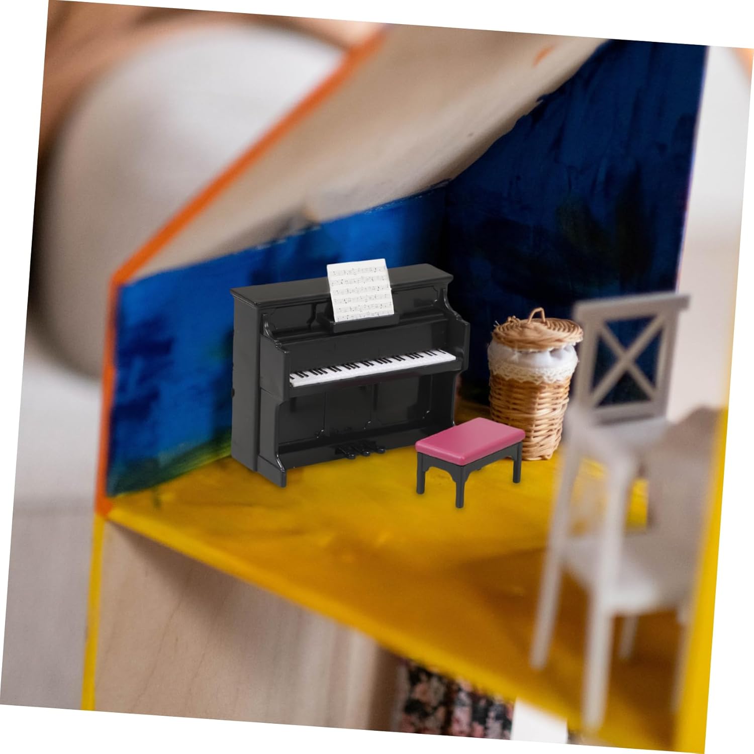Mini decorazione per la casa: sicura e comoda da usare, non facile da rompere o deformare, riutilizzabile e può essere utilizzata a lungo, strumento per la casa delle bambole Pianoforte per casa delle bambole: di mini strumento musicale classico, creativo e realistico, superficie liscia, strumento per casa in miniatura Mini pianoforte da casa: crea una vista mozzafiato sulla tua mini stanza, abbinandolo ad altri mini ornamenti musicali per la stanza, miniature per case delle bambole Strumento per casa delle bambole in miniatura: può essere utilizzato come oggetto di scena per scattare bellissime foto, accessori decorativi e belli per case delle bambole in miniatura. Mini pianoforte e sgabello da casa: puoi metterlo in una mini casa per dettagli più realistici, dandoti un'impressione visiva diversa, mini di strumento