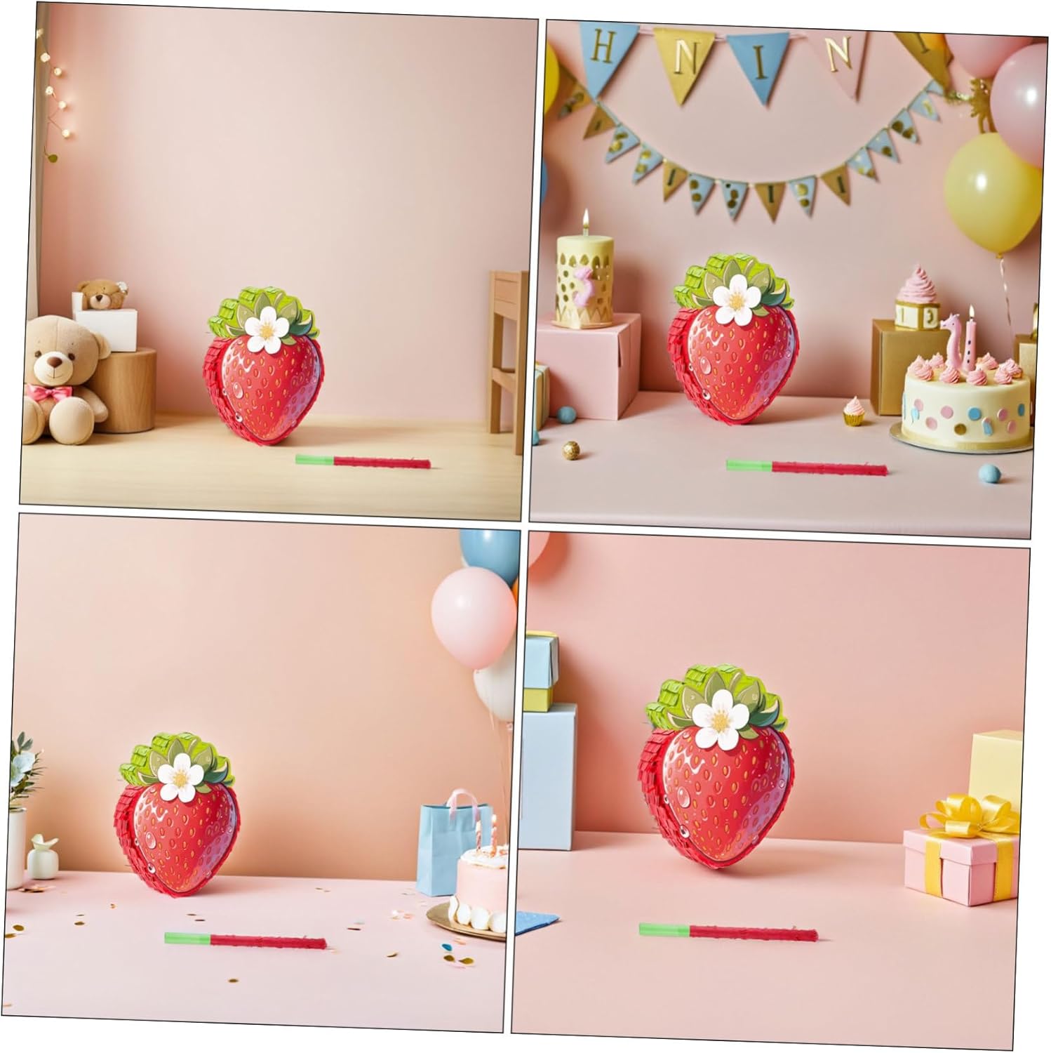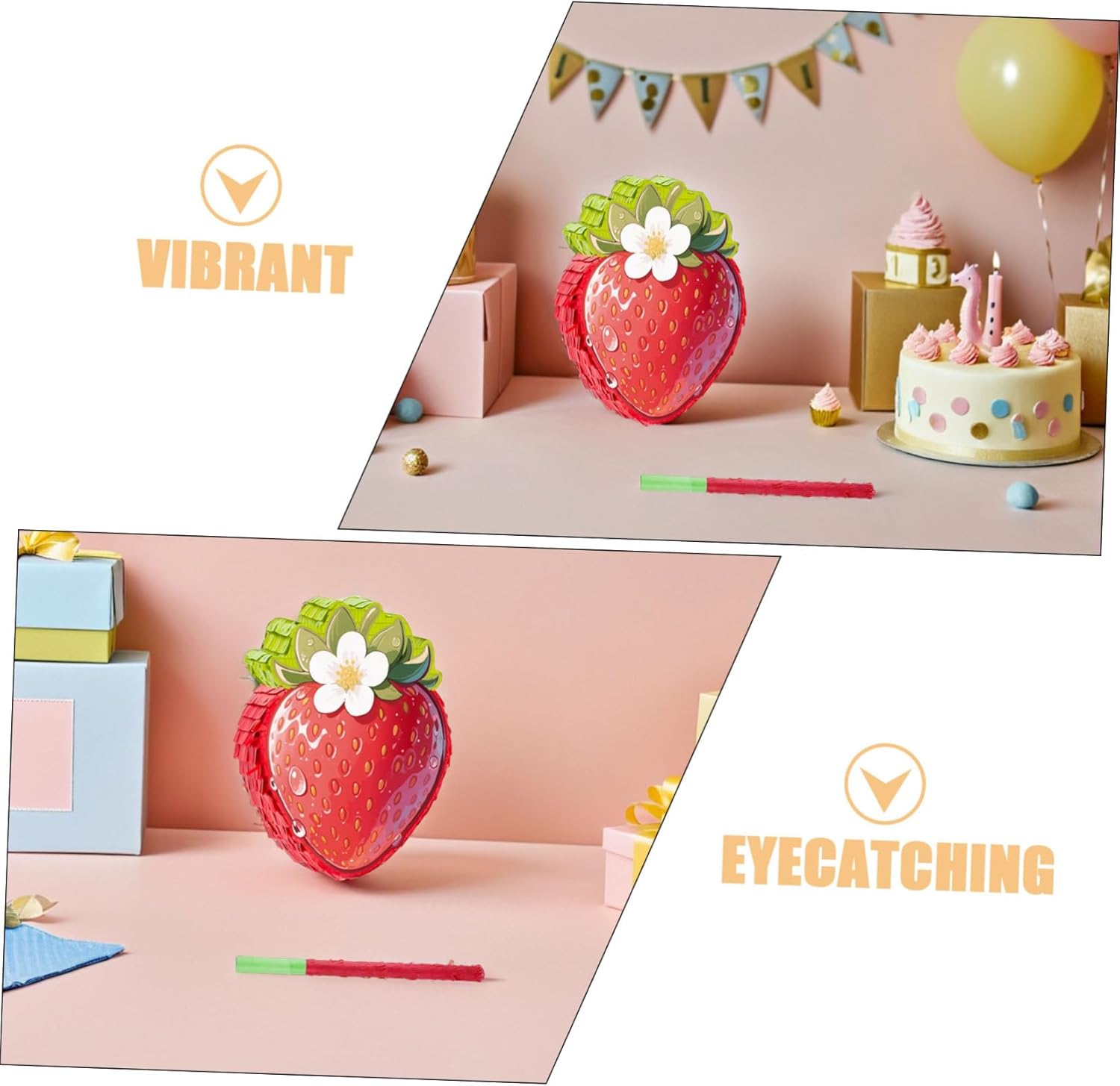 E design vivace: realizzata in cartone e decorata con carta crespa, questa piñata per festa di compleanno alla fragola garantisce resistenza e un aspetto luminoso e accattivante, divertente piñata a fetta di fragola, accessori fotografici per feste alla fragola Versatilità decorativa: usala come decorazione per bomboniere alla fragola o appendila come parte di una decorazione a tema fragola per valorizzare feste a tema fragola, decorazione cinco de Mayo e giochi di festa con fragole per aggiungere più fascino Per varie occasioni: ideale come decorazione per la prima festa di compleanno a tema fragola, per giochi di piñata per Cinco de Mayo o per attività di piñata a tema cibo, rende divertente ogni festa, decorazione per feste a tema fragole, piñata con cibo per feste di compleanno Divertimento per tutte le età: dotato di benda e bastone, è ideale per divertenti giochi di piñata con gli occhi bendati, party game con fragole e giochi a tema cibo, decorazioni di compleanno a tema cibo e decorazioni di coriandoli per feste di compleanno. Facile da usare: dotato di un anello per appendere e un foro di riempimento, che consente di riempire con coriandoli regali di compleanno, caramelle o decorazioni per feste a tema fragola, coriandoli regali di compleanno o decorazioni Piñata per Cinco de Mayo sono molto facili