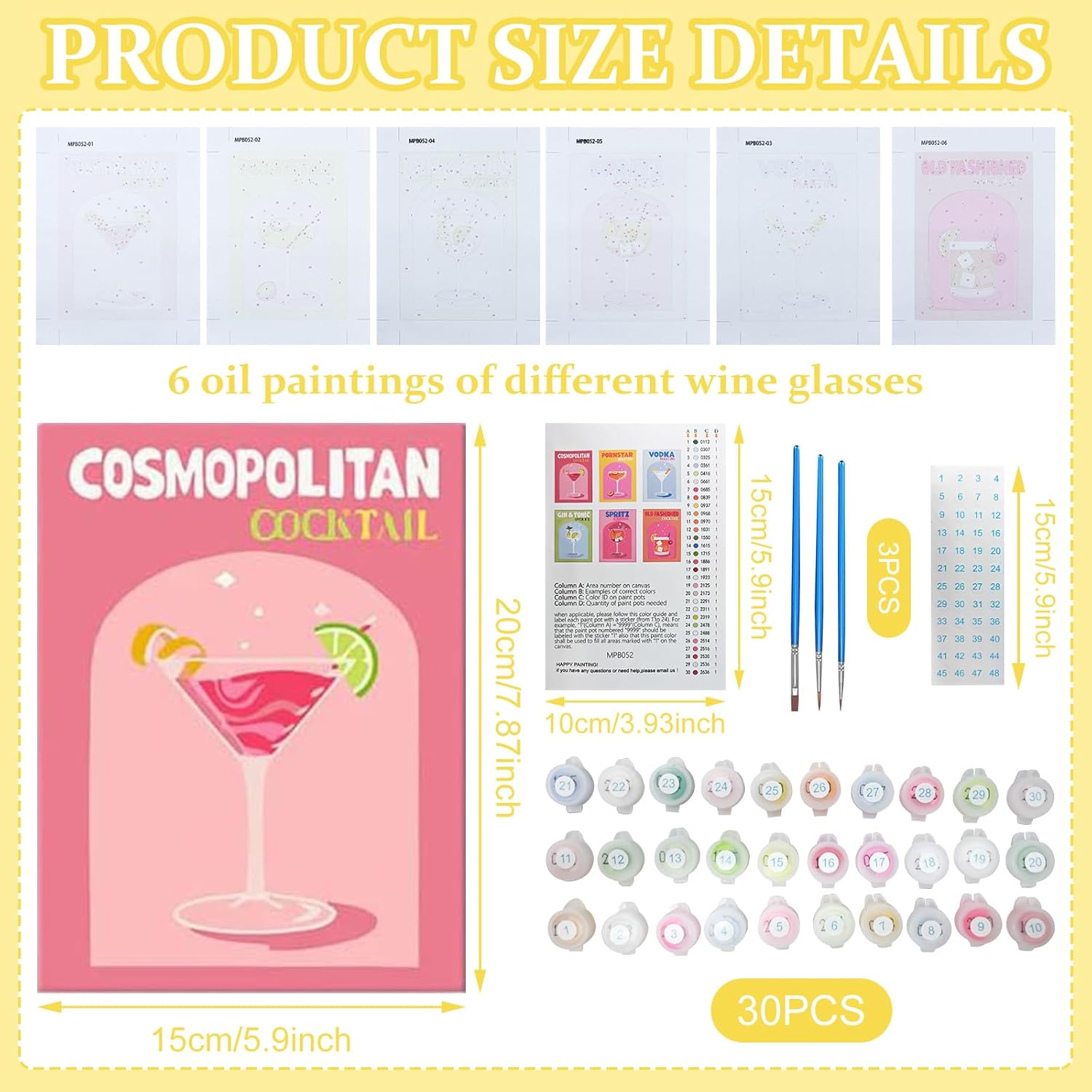Set per dipingere con i numeri: per tutti i disegnare con i numeri, adulti, bambini, principianti, tutte le immagini, ottenere 6 colori colorati dopo i numeri, cocktail (senza cornice) 20 x 15 cm con tre pennelli, con il colore acrilico necessario. MATERIALI: le tele di Dipingere con i numeri sono realizzate in tela facile da dipingere con colori acrilici facili da dipingere, che non sbiadiscono, e tre dimensioni di pennelli per colorare diversi dettagli. Adatto ai principianti: il cocktail di pittura con i numeri viene fornito con motivi e numeri prestampati sulla tela, basta seguire i numeri e i corrispondenti colori numerati sulla tela e dipingere le aree numerate, anche il tuo principiante può completare questo colorato moderno cocktail di pittura con i numeri. Multiuso: dopo aver terminato la pittura con i numeri, gli adulti, la tela può essere decorata con cornici che possono essere utilizzate per decorare salotti, stanze, uffici, sale da pranzo, ecc. O come regalo di compleanno per familiari e amici. Decorazione perfetta: dipingere con i numeri, il cocktail vi darà una grande esperienza di realizzazione quando è pronto. Dipingere con i numeri per adulti viene fornito con semplici fissaggi, in modo da poterli decorare facilmente ovunque.