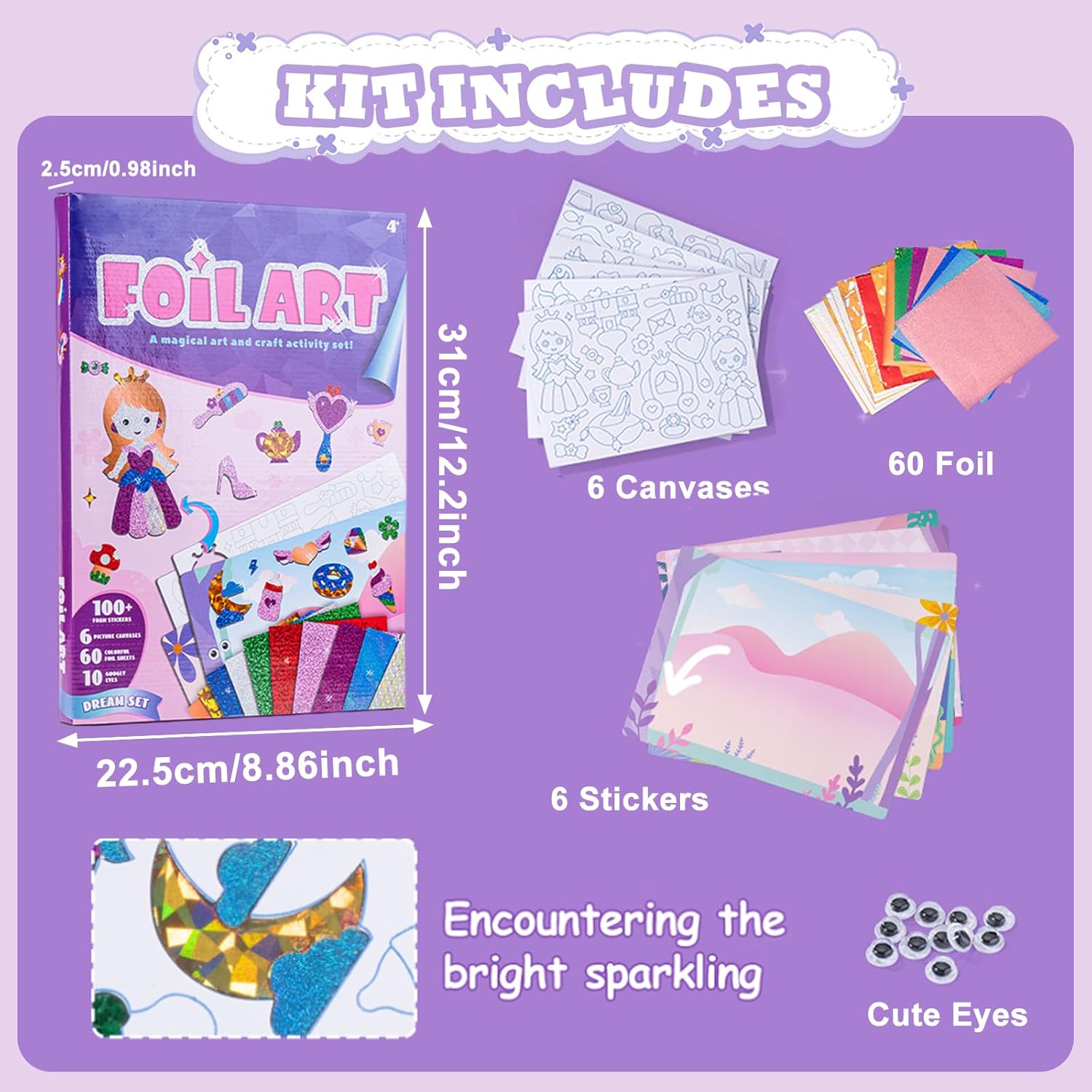 Foil Fun for Kids: questo set Princess Foil Fun for Kids include 120 fogli di pellicola colorata, 6 fogli di tela con motivi femminili e 6 adesivi in schiuma. I materiali ricchi supportano le creazioni fai da te dei bambini e fanno loro sperimentare il fascino del fai da te. Facile da usare: il nostro divertimento per bambini è incredibilmente semplice. I bambini scelgono semplicemente i loro adesivi preferiti in schiuma con motivi femminili, rimuovono il retro bianco e completano il design con una pellicola scintillante. Poiché non sono richieste abilità complesse, è facile iniziare e sperimentare varie combinazioni per creare il proprio capolavoro. Sviluppo di abilità: questo set divertente per bambini non solo allena la coordinazione degli occhi della mano e la percezione dei colori dei bambini incollando e colorando, ma stimola anche il pensiero creativo. Permette ai bambini di progettare liberamente modelli marini unici, tradurre la loro immaginazione in realtà e allo stesso tempo raccogliere i frutti della crescita giocando. Legame genitore bambino: il nostro set divertente in pellicola è perfetto per pomeriggi del fine settimana o lunghi viaggi. I genitori possono progettare, abbinare colori e creare creazioni insieme ai loro figli. L'ispirazione reciproca e la collaborazione armoniosa durante la creazione comune stimolano la creatività dei bambini e allo stesso tempo rafforzano il legame genitore-figlio, creando preziosi ricordi condivisi. Come regalo: con i suoi adorabili disegni per ragazze, questo divertente set per bambini è un regalo eccezionale per bambini dai 4 ai 10 anni. Che si tratti di compleanno, Natale, Pasqua, festa dei bambini, attività di classe o come regalo per feste, è un regalo ideale che incoraggia i bambini a staccarsi dagli schermi e a dedicarsi completamente alla gioia del fai da te.