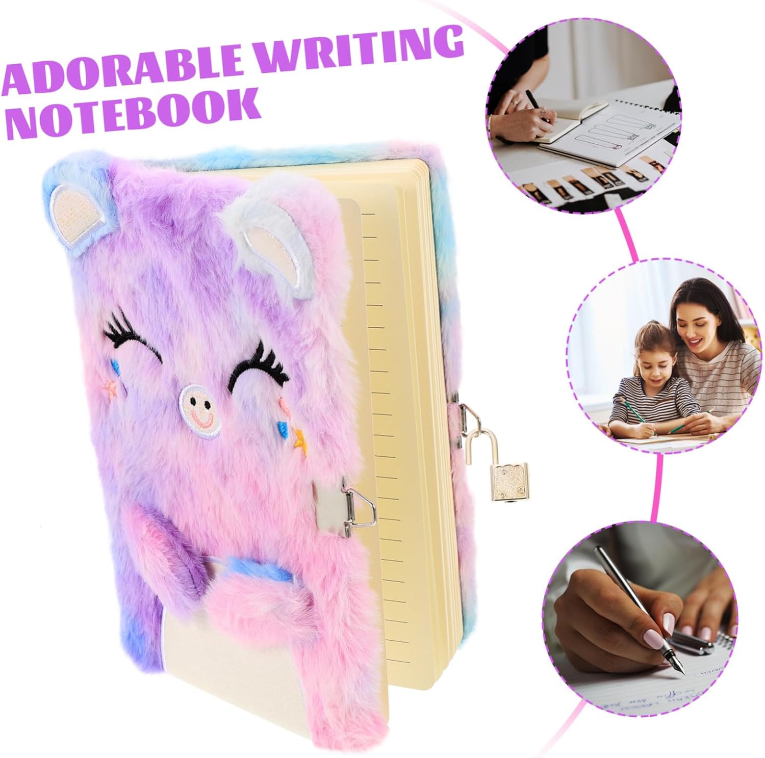 Quaderno di peluche per ragazze - è piccolo, leggero, non occupa molto spazio ed è facile da trasportare, diario per ragazze, diario studentesco - il design creativo ti regalerà un'esperienza meravigliosa e porterà atmosfera ai bambini, cancelleria per quaderni di cartoni animati per studenti - design adorabile e lussuoso. Questo quaderno è anche ben progettato per aiutare i bambini a sviluppare abitudini. diario di peluche per ragazze. Quaderno con copertina in peluche - Con una copertina in peluche a forma di cartone animato, questo diario per ragazze sembra molto squisito e adorabile, un quaderno per ragazze Diario in peluche - carta foderata liscia, puoi scrivere le tue esperienze uniche in questo quaderno, soffice quaderno