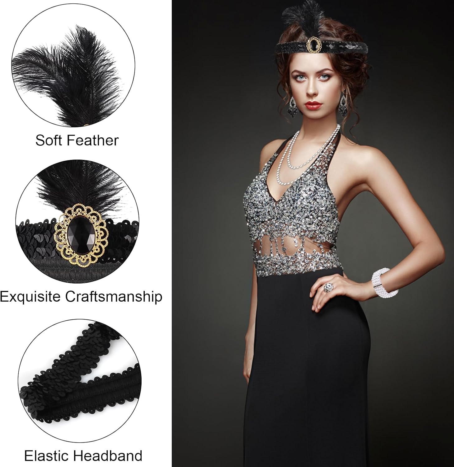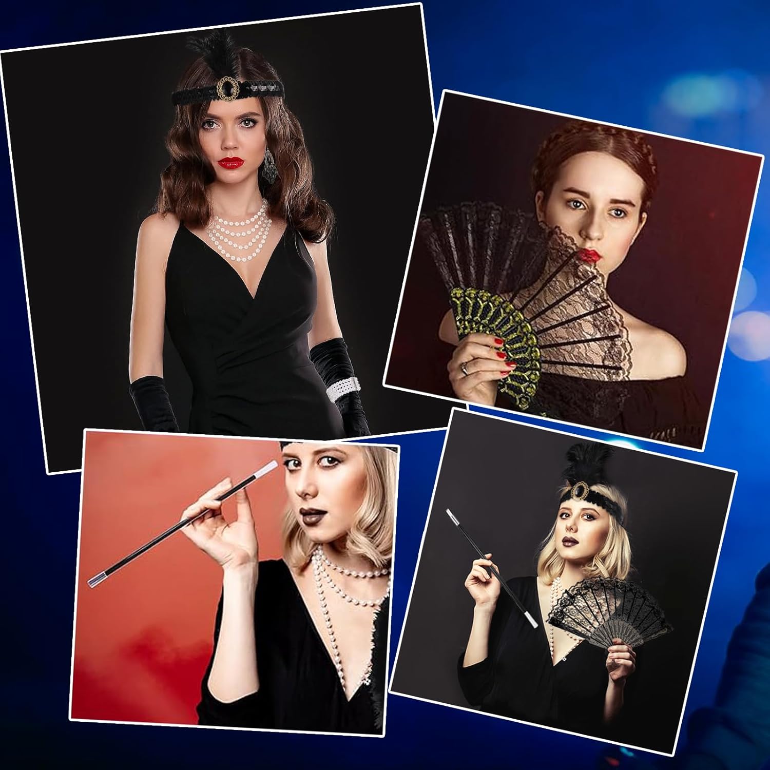 Descrizione prodotto Caratteristiche: ✔ I flapper degli anni '20 erano un'epoca di giovani donne occidentali che indossavano gonne, si tagliavano i capelli e avevano un senso unico della moda. ✔ Questo kit di accessori ti riporterà indietro nel tempo e ti darà l'immagine classica di una giovane ed elegante ragazza festaiola degli anni '20. Ti farà sembrare affascinante e speciale. ✔ Può essere utilizzato in una varietà di scenari, come feste, feste da ballo e giochi di ruolo. È adatto a persone che hanno un debole per lo stile retrò. Specifica: Quantità: 7 Colore: nero Materiale: seta, plastica Taglie: taglia unica La confezione include: 1 * Fascia per capelli 1 * Guanti neri lunghi 1 * Collana di perle finte 1 * Bracciale con perle finte 1 * Oggetti di scena portatili 1 * Orecchini 1 * Ventaglio di pizzo Avviso di sicurezza No