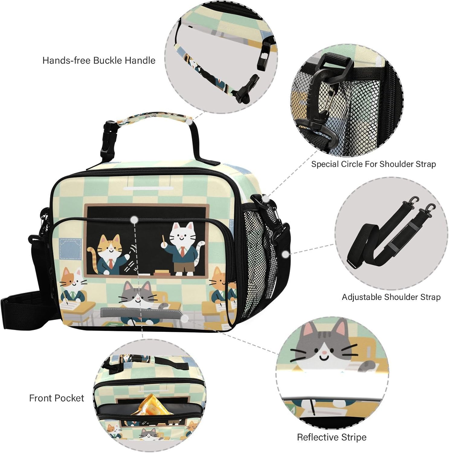 Dimensioni disponibili: 28 x 11 x 23 cm. La borsa per il pranzo da donna ha una grande capacità perfetta per il tuo cibo, snack e bevande dell'intera giornata. Materiale di mantenimento caldo: la superficie della borsa per il pranzo per bambini è in poliestere, l'interno è in pellicola di alluminio isolante termico, che svolge un buon ruolo nell'isolamento termico, nella conservazione del calore e nell'effetto di raffreddamento. Eccellente isolamento: con rivestimento in alluminio isolato e tecnologia ben fatta, le scatole per il pranzo possono mantenere il pranzo, la frutta o le bevande fresche, calde o fredde prima di mangiarle. Puoi sentirti libero di gustare il cibo ovunque tu sia e ogni volta che sia. Facile da trasportare: con grande capacità, tracolla regolabile e comoda maniglia robusta, la borsa per il pranzo portatile per bambini rende semplice il trasporto del pranzo. Non è necessario trasportare borse piccole o grandi per il pranzo, la bottiglia, le necessità per lavorare, scuola, viaggi, ecc. Basta prendere e andare con un carico leggero. Il design della tracolla può liberare le mani! Scenario applicabile: le borse per il pranzo per adulti sono alla moda, leggere e che possono essere una perfetta borsa da campeggio, borsa da picnic, borsa da viaggio, borsa da lavoro per uomini, donne, adolescenti, infermieri, insegnanti, familiari, ecc.