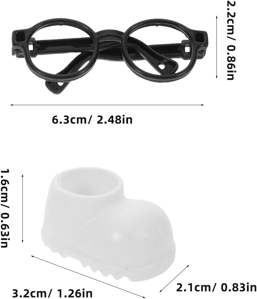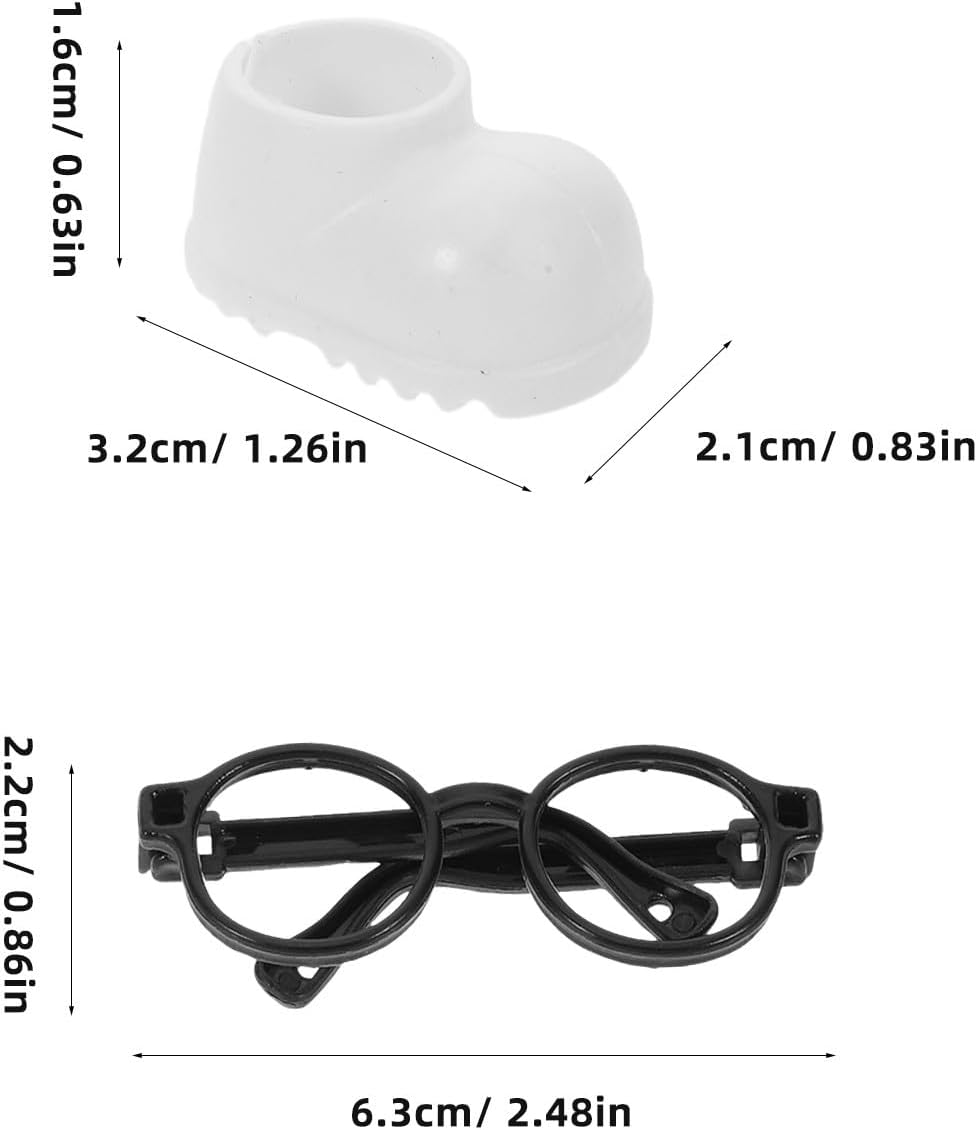 Dettagli per mini figure: gli occhiali e le scarpe per mini bambole sono finemente dettagliati, conferendo alle bambole della tua collezione un tocco realistico ed espressivo Opzioni di moda flessibili: mini occhiali da sole per bambole e scarpe per bambole offrono stili estesi, dando vita a combinazioni uniche di occhiali da vestire per bambole per ogni occasione Presa sicura: i mini occhiali e le mini scarpe per bambole sono realizzati per essere leggeri, rimanendo sempre in posizione e mantenendo le bambole comode per l'esposizione o il gioco Accessorio facile: cambia senza sforzo gli occhiali delle mini bambole e le scarpe in miniatura non finite per adattarle all'umore o alla scena delle tue bambole, migliorando la versatilità nei tuoi lavoretti per la casa delle bambole Adatto a varie bambole: questi occhiali per bambole, piccole scarpe e occhiali giocattolo sono compatibili con più marche e modelli, ampliando le tue possibilità creative per accessori per case delle bambole in miniatura