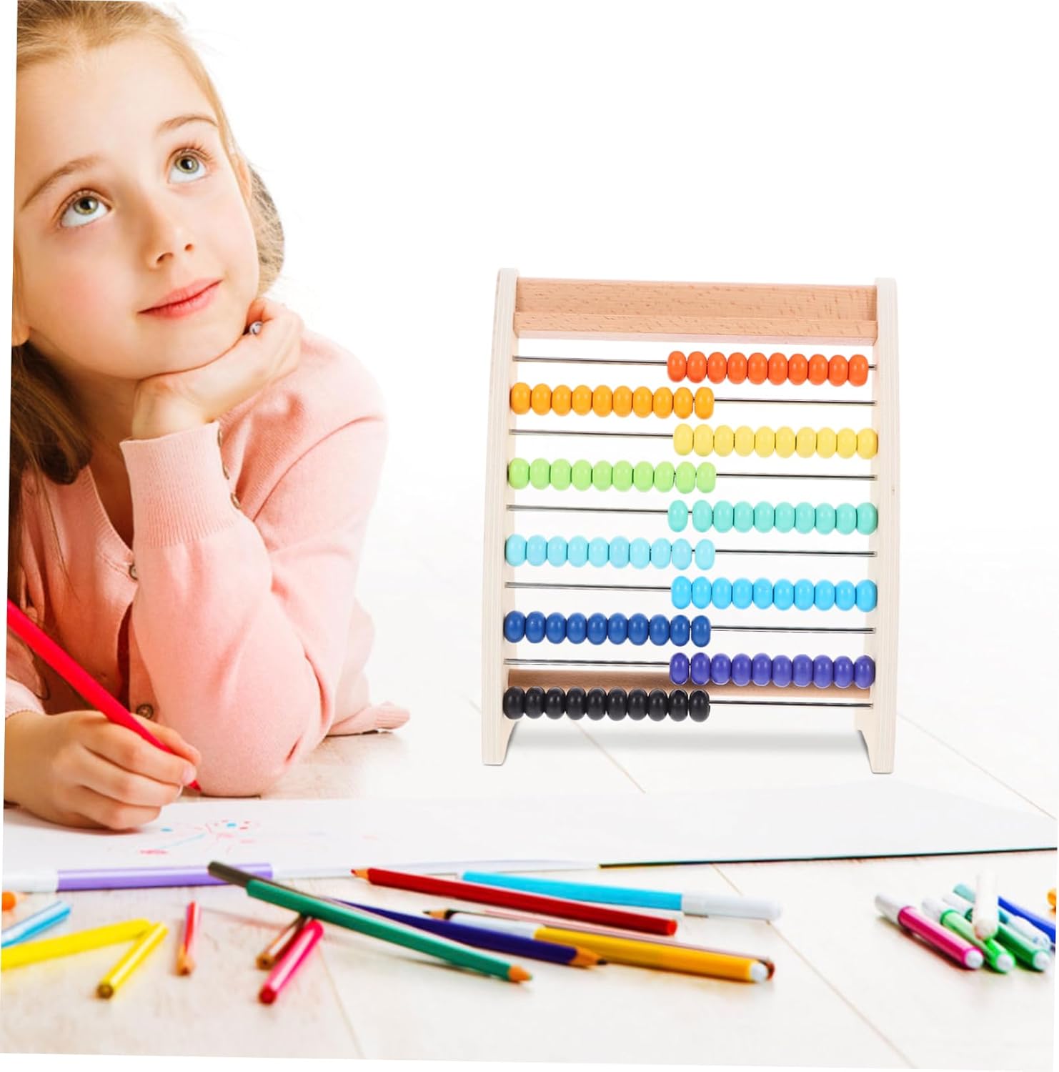 Cornice per il calcolo dell'abaco: è appositamente progettata per promuovere le abilità pratiche dei bambini, nonché il riconoscimento di forme e colori. Abaco aritmetico per giocattoli matematici educativi: questo strumento educativo fornisce un metodo pratico per imparare addizioni, sottrazioni e calcoli con un abaco di legno. Imparare l'abaco: aiuta a stimolare l'immaginazione e il pensiero dei bambini e a sviluppare le capacità cognitive di base e la coordinazione occhio-mano. Abaco aritmetico pratico: tutti i tipi sono abbastanza impegnativi da portare gioia ai bambini, ma promuovono anche facilmente la fiducia in se stessi, abaco per la matematica dei bambini Cornice per abaco per l'educazione precoce: design di perline colorate, colori vivaci, può attirare l'attenzione dei bambini, non solo per imparare l'aritmetica, ma anche per capire il colore, abaco per l'istruzione